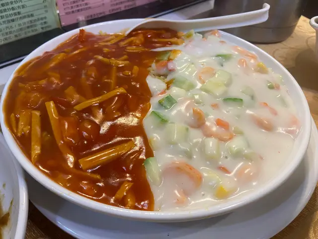 今日又過來大力, 今日又係坐滿晒, 今日也是開左壺玫瑰花茶🌹, 要左三餸麵, 時菜加煎蛋加沙爹牛肉, 另外配左一個例湯, 今日係南瓜湯, 等左一陣送上例湯, 非常濃的顏色, 見到入面有紅蘿蔔🥕, 應該加左豆😋所以好清甜👍好好飲, 另外再隔一回三餸麵到, 我都係㨂番上海麵🫶, 時菜比左菜心, 比得都幾多, 又清甜🤩沙爹牛肉唔係想食牛肉, 係想試佢的沙爹醬, 溝埋d湯好味, 夠香😘佢d沙爹牛肉個色真係做得好似😅👍口感食到係菇, 但質地做到好似肉敢, 認真利害🤣, 只🍳煎到金黃色好香, 唔錯💞不過大家留意, 今日星期日係需要加一😁查看更多