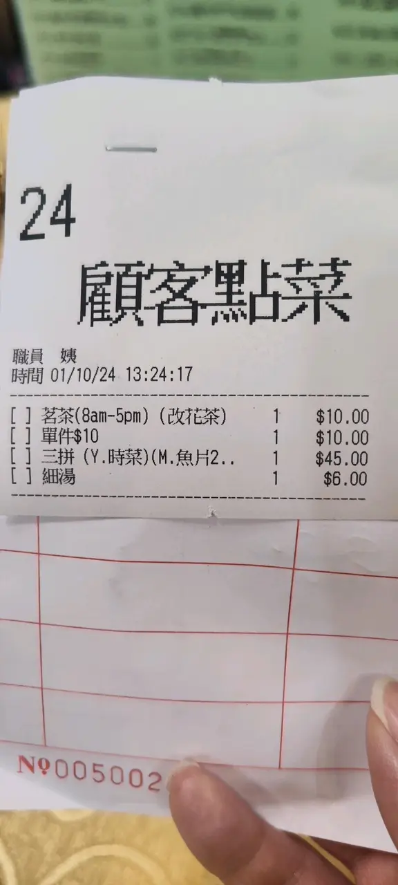 今日又過來幫襯, 今日唔要菊花茶, 叫人冲左壺玫瑰花茶🌹, 琴日見人食椰汁紅豆🫘糕, 今日叫一件試下, 今日例湯係冬瓜祛濕湯, 亦叫番蔬菜湯三餸麵, 玫瑰花🌹唔係太濃, 少少清香, 等左一陣送來椰汁紅🫘豆糕, 好香椰汁味好多紅豆, 不過糕實淨左少少😆但勝在唔係好甜😋👍轉頭送上冬瓜祛濕湯, 入面有粟米🌽紅🥕蘿蔔, 亦有雪耳和豆, 煲得好香好濃👍👍, 飲落清甜舒服, 今日也是叫上海麵同煎蛋🍳加菜🥬, 不過今次試下魚片, 入面加左粟米🌽食落少少甜幾得意😘, 今日係紅日所以無敢多人, 但大家留意紅日公眾假期星期六日要另外加一服務費😅查看更多