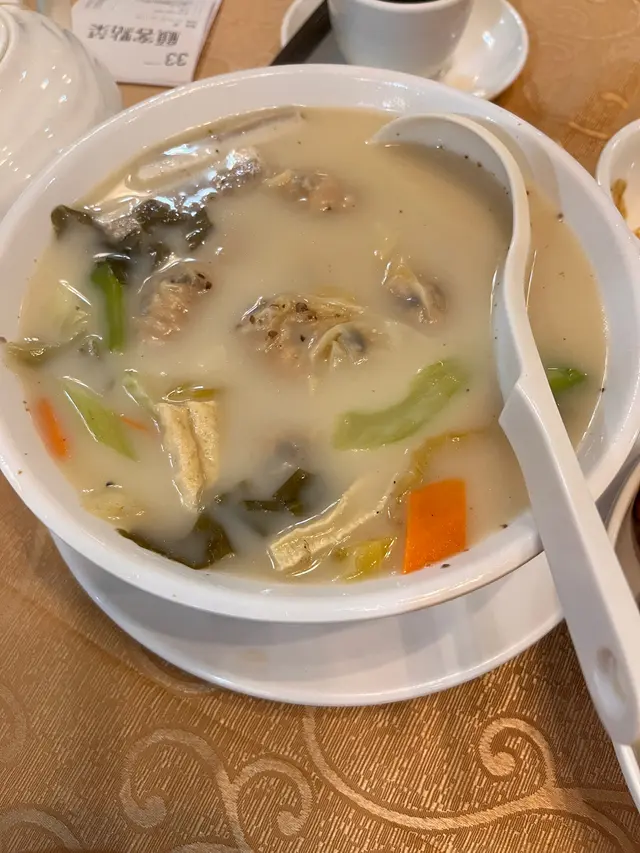 N年前無來食過, 今日想來食下, 由於中午食飯時間, 所以都坐滿晒人, 等左一陣比安排坐四人枱, 叫左壺菊花🌼, 店員好好, 比水盆給我清洗餐具👍, 一個人真係唔食得d乜嘢😅, 叫左一個三餸麵, 上海麵配蔬菜素湯, 加時菜🥬煎蛋🍳魚蛋, 另外加左一個例湯, 今日係西洋菜南北杏紅蘿🥕蔔, 等左一陣送上, 比元朗分店大碗, 煲得都好溶好濃, 飲落天然好香西洋菜味亦無味精🥰👍, 再之後送來湯麵, 份量十足, 個碗較細, d餸放滿晒, 都要夾開先食到😆, 飲啖湯先, 清甜唔口渴😋上海麵好味好滑, 唔會食到成口粉😁菜心好甜只蛋好香, 兩粒魚蛋味道也不差👍整體唔錯, 清清淡淡有下次☺️🥢價錢也實際合理😘查看更多