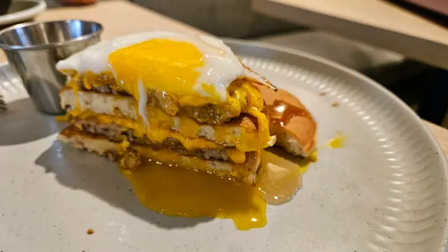 大前日(6-9-2025 Sat)朝,喺屋企整嘢整晏咗,到晏晝肚餓去,要食晏喇,去邊喥食?老公記起男友人之前介紹過,好特別,活化咗中醫館嘅呢間,我哋嚟到時要等位,但好彩都有郁,終於等咗10分鐘就有。我哋睇menu,選擇唔太多但有特色,所以都諗咗一段時間,最後要咗:2. $46.00嘅薑黃鮮奶飲品大部份係咖啡,非咖啡類嘅唔太多,但都有啲有特色嘅,我就揀咗呢個。拎到嚟,原來唔係凍係熱,攪勻飲先,原來佢係暖暖地,薑黃味唔太濃,成杯味道正常。3分4. $48.00嘅大和堂鮮奶咖啡呢個都係熱飲,不過同樣係暖,我開頭飲,係飲到甘味,就算攪勻飲都係,老公話佢有蜜糖,但我都唔覺。𠲖o家仔細睇返menu,成份原來有伯爵茶,蜜糖,espresso同奶。2分3 . $118.00嘅雞蛋仔與雞配自家製檸檬醬等好耐,呢個至到,無他,寫明製作須時15分鐘,呢個係雞蛋仔加一件炸雞扒,伴以自家製檸檬醬。雞扒已切開一件件,食落,外脆,但唔juicy,蘸佢嘅醬幾好食。(2+5)/2=3.5分雞蛋仔外面都有啲脆,內裡軟綿綿。3分1. $98.00嘅菠蘿鹹檸七窩夫呢個一坐低就即落單,但都係好耐,最後至到,原因都係製作須時15分鐘。呢個有三片窩夫同兩片菠蘿,窩夫脆口,菠蘿甜美,而鹹檸七嘅味道由邊喥嚟?原來係有啲醬,蘸嚟食幾得意,但同菠蘿食,味道又好夾。4分環境:保留中醫館嘅百子櫃等舊物,櫃枱改為水吧。冷氣唔算好夠,因為喺出風口加咗個橫檔,原意係好,但可能太橫,落到嚟嘅冷空氣唔多。4.5分其他:用餐時間75分鐘…Read More