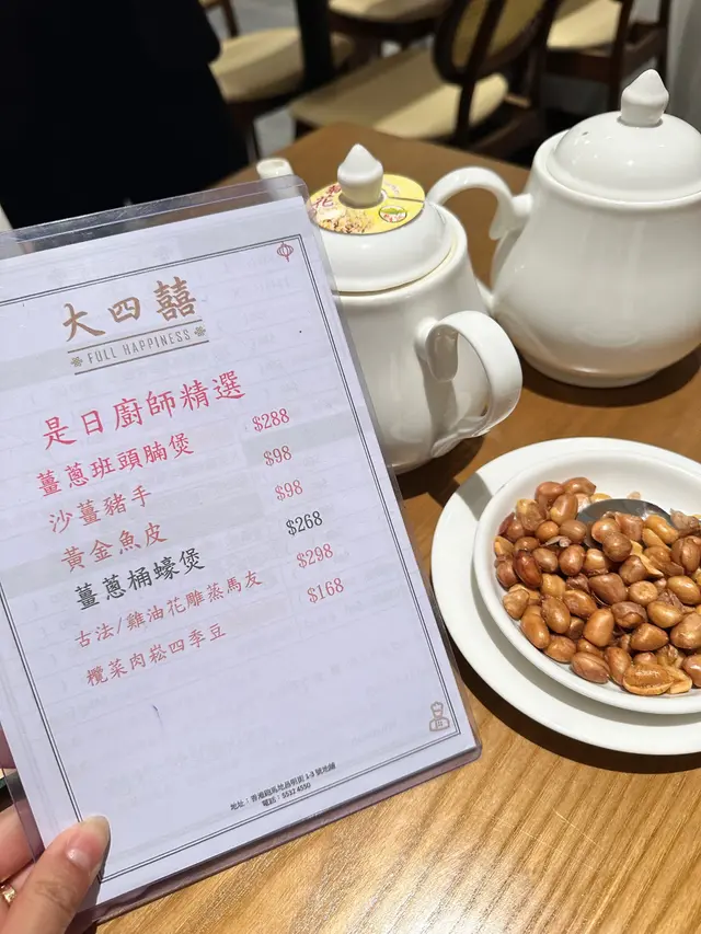 ❛ 招牌豉油雞 ($248/半隻)必試招牌菜!記得要前一日預訂 雞皮爽薄 肉質好嫩滑祕製豉油汁係靈魂!濃郁得來鹹甜平衡 好想打包!❛ 蟹肉炒大良鮮奶 ($198)喺酒樓少見嘅順德名菜,大良炒鮮奶濃厚順滑 陣陣奶香味同白雪雪嘅鮮甜蟹肉完美融合,份量好慷慨 一定要趁熱食~❛ 鮮菠蘿咕嚕肉 ($158)肉粒新鮮炸起 外酥脆內軟,配酸甜醬汁同鮮甜菠蘿好開胃❛ 醬香牛肋骨 ($368)❛ 豉油皇乳鴿 ($98/隻)鴿皮爽薄 肉好嫩滑多汁❛ 蒜蓉粉絲蒸大聖子皇 ($88/隻)鮮美彈牙 搭配蒜蓉粉絲好入味❛ 干煸欖崧四季豆 ($138) 鑊氣十足 大大碟 雖然喺跑馬地但係價錢好合理 有多款精緻手工菜式服務幾好 餐廳雖然唔大但完全無壓迫感有兩間客房 坐得舒服 啱一家人/朋友聚餐 會再訪!—ʜᴋᴅ $250-400 𝗉𝗉 (dinner)𝙧𝙚𝙨𝙚𝙧𝙫𝙖𝙩𝙞𝙤𝙣𝙨: yes𝙧𝙚𝙫𝙞𝙨𝙞𝙩? yes𝙤𝙫𝙚𝙧𝙖𝙡𝙡: 8.5/10—📍 大四囍 Full Happiness跑馬地昌明街1-3號地舖…查看更多