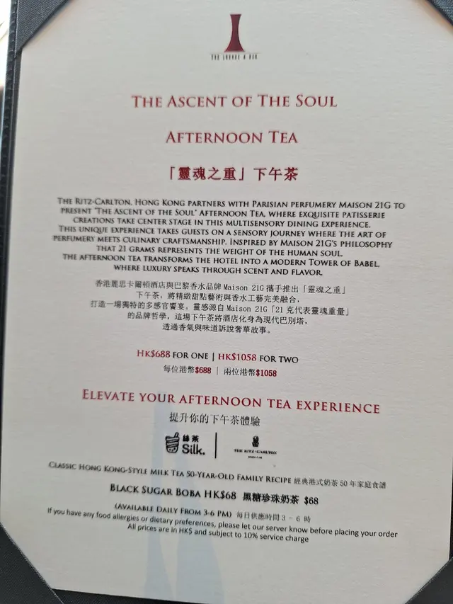 大堂酒廊 (尖沙咀) 網上訂座即賺Rice Dollars 網址: https://s.openrice.com/QrbS0LCO000 地址: 香港尖沙咀柯士甸道西1號環球貿易廣場(ICC)香港麗思卡爾頓酒店102樓 電話: +852 22632270