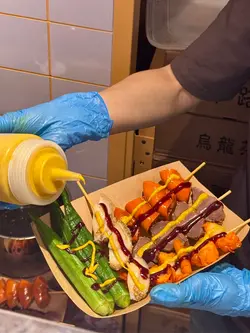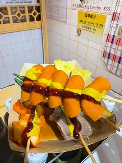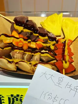 Tips:必點:鮮鮑魚串、超大墨魚串、一口墨魚丸,新鮮好食~爽口!醬汁:蜂蜜芥末+懷舊甜醬雙拼是經典套餐大概50港幣,性價比ok!地址易搵,地鐵站附近~旺角中心旁邊!查看更多