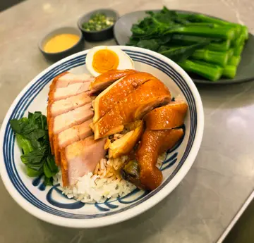 今次食咗叉燒雞飯配熱杏霜,好滿足!叉燒色澤紅潤,外層帶少少焦香,甜中帶鹹,咬落仲有啲油脂感,唔會乾巴巴。雞肉就揀咗貴妃雞,配白飯同少少豉油汁,簡單得嚟對味。仲有幾條菜,平衡返一下。