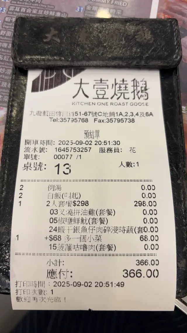 大壹燒鵝 (啟田大廈) (藍田) 網址: https://s.openrice.com/QrbS0aQeA00 地址: 香港藍田啟田道51-67號啟田大廈地下1A, 2-4及6A號舖 電話: +852 35795768