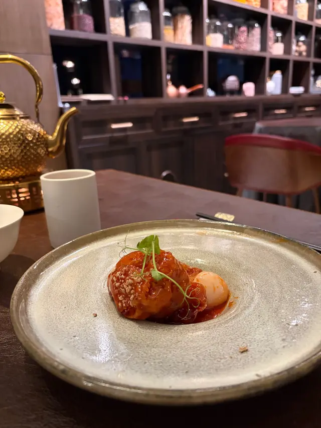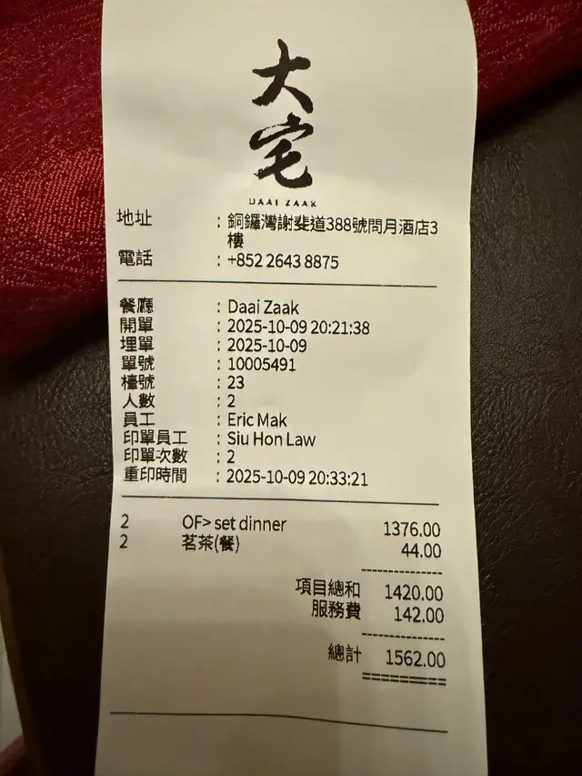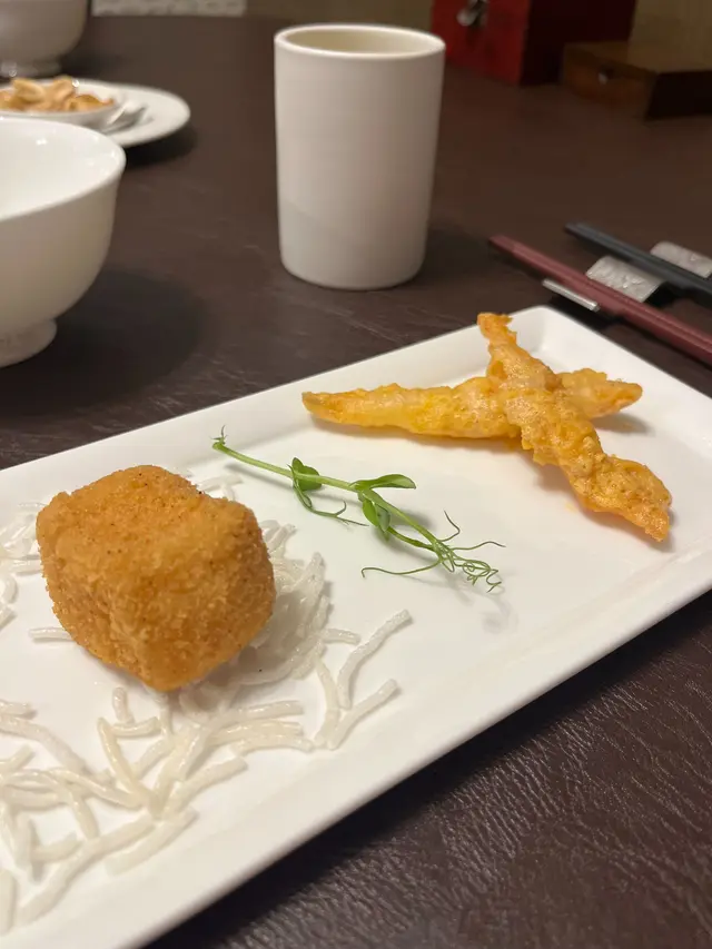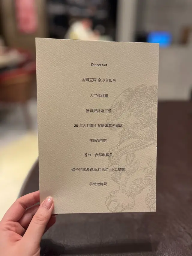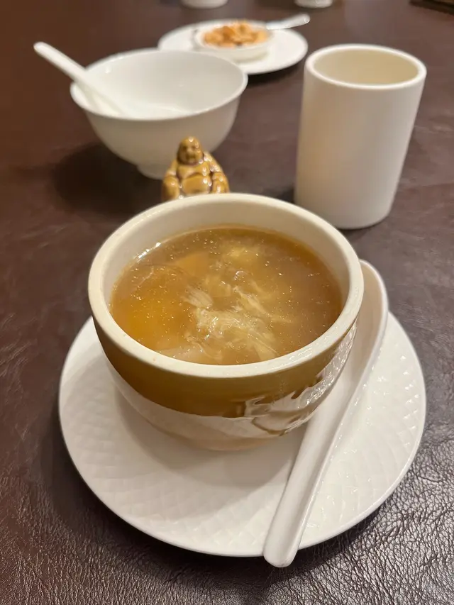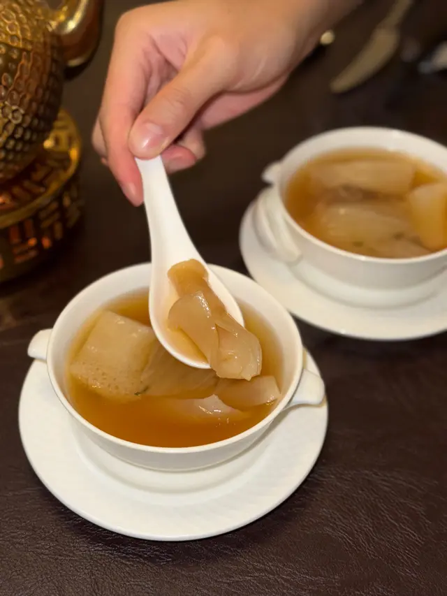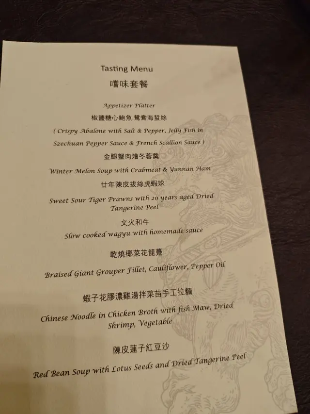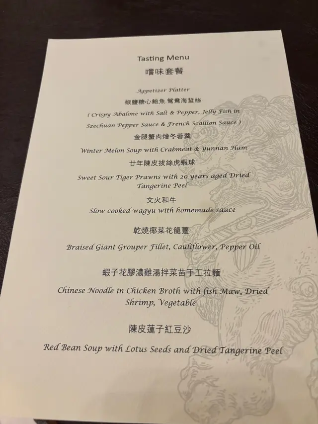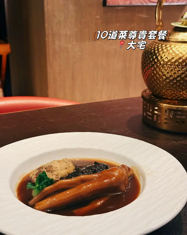 都好幾年沒有寫食評了,突然好想再分享下食後感,就由這食評開始。之前睇過KOL介紹這食店的點心任食,覺得無論價錢都幾合理,所以就上美麗華eshop買了2張任食(每位$249) ,如果即埸付款每位要比多$50(是茶錢和加一) 。當日我們預早到達食店,服務員很貼心提議可以在上層酒店大堂休息一下。時間到了12.00pm, 我們已安排入座,點心任食時間由 12.00-3.00pm。食店環境選用西式風格的水晶燈但亦掛上中式字畫,有家的感覺,呼應食店名字-大宅;店內有8張方形枱和兩張圓抬,另外亦有一間房可供訂房,近門口有幾張户外枱。餐具以純白色為主,茶壺是金色很懷舊,另送上辣醬、豉油、醋、喼汁作調味。任食點心加埋甜品一共有20款如下:我們先點選普洱茶和龍井,龍井茶味清香而普洱茶有噙味,不太理想。過了一會,每位送上1碗花膠東菇竹笙燉湯和1隻炸蠔,燉湯味道清甜沒有味精,花膠厚和大件而且膠質重,東菇菇味濃郁,炸蠔的口質香脆和肉質煙煒,很美味,但可惜每位只得1隻。可能是週末比較人多,點心要落單後40分鐘才陸續送上。百花脆蟹蚶:這點心通常要在飲宴才可嘗到,炸漿香脆不油膩而且不算太厚皮,啖啖蟹肉沾些喼汁一起吃可減油膩感,但份量畧為小巧。芝麻蝦多士:這是我很喜歡的點心之一,不知是否擺放久了,多士口感不夠香脆加上蝦份量少,而芝麻尚算多。香煎蘿蔔糕:煎得香脆,每啖都有蘿蔔絲不會只有粉糕,臘味濃郁香口。焗叉燒餐包:餐包的皮畧厚但裡面的叉燒肉飽料太少。紅油炒手:炒手裡肉碎份量大粒,醬汁微辣惹味,將餐包沾些醬汁很美味。魚肚雞扎:魚肚的味道畧淡,雞肉口感較硬,東菇口感淋身菇味濃。鵪鶉蛋燒賣:這是老牌點心之一,已經很多酒樓沒有提供,蛋味濃,肉的調味剛剛好不會太咸。醬皇金錢肚:肉質口感淋身而且入味,調味到位不會過咸,值得encall。上湯灌湯餃:這是回本位的點心之一,所以每人吃了3碗,上湯清甜,料豐富,花膠厚肉大塊但欠鮮味,肉碎份量多而且包裹著肉碎的外皮口感不會過淋。金絲芋卷:味道少甜芋泥軟滑,金絲外皮香脆但不油膩,是不錯的甜品。黑椒牛仔骨:味道微辣口感軟淋,但肉質比較肥油膩。金沙流心煎堆:煎堆的質感不夠香脆而且餡料不流心。馬豆糕和桂花糕:最後的甜品亦送上,馬豆糕的豆太硬,桂花糕口感畧比硬,可能魚膠粉太多。**雖然價錢不算貴,但選擇不算多而且一般點心如蝦餃燒賣都沒有提供,而且方形枱是比較細小所以不太適合任食。…查看更多