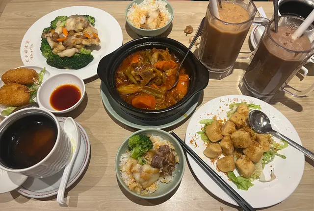 今日朋友約我去炮台山吃晚餐,朋友提議去大小姐冰室品嚐美味海鮮菜式,這間餐廳位於北角英皇道165至175號公主大廈10-13號地舖,港鐵炮台山站B出口,行幾分鐘就到,非常方便。入到餐廳見到有很多顧客,亦見到不少外賣顧客,餐廳地方寬敞整潔,裝修得溫馨 ,枱凳擺放得整齊,令人坐得舒服。餐廳餐牌食物款式都不少,有大小姐皇牌推介、特色小菜、大小姐新口味、咖喱及焗飯、即炒推介懷舊系列、健康精選系列、三文治及多士類、特色飲品、飲品,真係有好多懷舊嘅食品。晚飯小菜套餐亦非常多菜式抵食,選一款小菜就奉送白飯、是日例湯及熱飲品,我朋友介紹選海鮮小菜來食,我哋就叫咗椒鹽鮮魷、豉油王虎蝦、百花炸釀蟹鉗及清炒蒜蓉生菜,是日例湯就升級燉湯,飲品選咗爆珠雜果賓治同凍柑桔蜜。這間冰室食物質素高,份量不少,菜式好味道,價錢又唔貴,仲冇加一,店員服務態度又好,好值得向大家推介來食。🐔沙參玉竹紅棗杞子燉雞湯湯底清澈滑順,雞肉鮮嫩,配料軟綿,味道甘甜的紅棗和杞子的香氣,沙參的微苦與雞肉的鮮香交融,口感溫潤,滋補效果明顯。🦑椒鹽鮮魷外酥內嫩,魷魚的彈性十足,椒鹽的顆粒感增添了口感的層次,香辣的椒鹽味與鮮魷的海鮮鮮味相得益彰,咸香可口,令人開胃。🦐豉油王虎蝦蝦肉緊實且彈牙,豉油的醇厚感讓蝦肉更加滑口,醬油的鮮香味與蝦肉的自然甜味融合,豉油的鹹香提升整體味道,回味無窮。🦀️百花炸釀蟹鉗外層酥脆,內餡柔滑,蟹肉的鮮美與百花的香氣交融,蟹肉的鮮甜與花香的清新相輔相成,炸制後的香氣四溢,讓人垂涎。🥬清炒蒜蓉生菜生菜脆嫩,蒜蓉香味濃郁,清爽的口感令人提神,蒜香與生菜的自然清甜搭配,簡單卻充滿活力,是一道健康的配菜。🍒爆珠雜果賓治果粒鮮嫩多汁,清爽的果肉與脆皮相成對比,多種水果的甜味交織,酸甜適中,令人感到清新愉快。🍋凍柑桔蜜冰涼爽口,柑橘的果肉和蜜糖的滑順感相結合,柑橘的酸甜與蜜糖的甜香形成對比,清新又具解渴作用,適合夏季享用。…查看更多