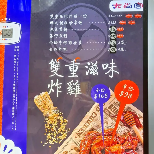 大尚宮 (荔枝角) 網址: https://s.openrice.com/QrbS0uGCC00 地址: 香港荔枝角青山道479-491號香港工業中心C座地庫C1B-5號舖 電話: +852 46255595