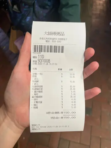 清清腸胃食粥最好 ! 行經北角找到 大師傅粥品, 下午茶時間, 人流仍多. 大家立即內進搵位. 粥店面稹大, 裝修光猛, 座位整齊舒適, 牆上有食物照片, 容易點餐. 熱柜內的油炸鬼, 牛利蘇, 煎堆, 大大件, 剛剛炸起, 好香脆. 餐牌印制非常清晰, 食物選擇多, 粥分: 即熟粥, 生滾粥. 傳統小食有油器, 炒麵, 粽, 腸粉. 重有飲品. 經濟實惠, 適合街坊. 檯上醬汁, 芝麻, 齊備. 抽櫃有筷子, 紙巾. 好衛生.我們叫齊自己喜好. 一息間熱辣辣便送到. 擺滿檯.牛利蘇 炸得香脆, 外酥內軟. 送粥, 一流好食. 凍豆漿, 豆味香濃, 好滿意. 配上 鹹肉粽, 吾錯.鹹肉粽 飽肚之選. 糯米煙韌, 蛋黃鹹香, 加上優質豬肉, 食得回味.蝦米炸兩腸: 好大碟, 腸粉皮薄薄粉質細滑, 柔軟, 加上蝦米及香蔥, 非常可口. 腸粉內包裹著脆脆油條, 淋上豉油, 甜醬, 辣醬和麻醬, 再灑上芝麻. 吃得有層次. 生滾粥: 手打肉丸粥 + 黃沙豬膶 只加 $5. 粥底軟綿綿又鮮甜, 黃沙豬膶 夠肥美, 口感爽脆. 手打肉丸彈牙, 配上香蔥一起吃, 好味.朋友也叫了生滾粥: 窩蛋鮮牛粥 + 鮮鯪魚球, 只加 $5, 內藏有一隻生蛋.先找出雞蛋, 好金黃色.把蛋刺穿拌勻, 粥立即變得更醒神, 粥底又綿又滑, 滿滿蛋味牛味, 加上鮮鯪魚球的魚香, 配搭得非常好. 粥靚料多, 配上香港傳統小食, 食得開心. 服務理想, 坐位 舒適, 吾錯啊!…查看更多