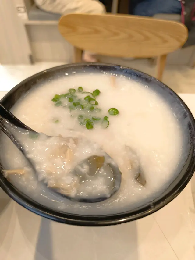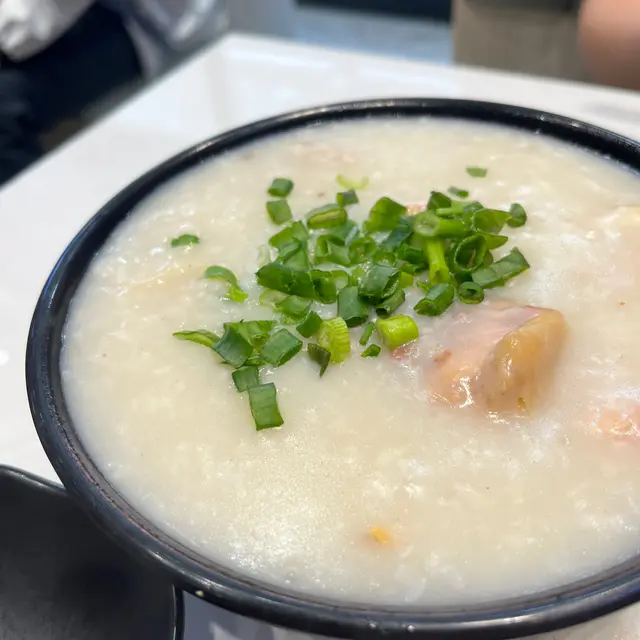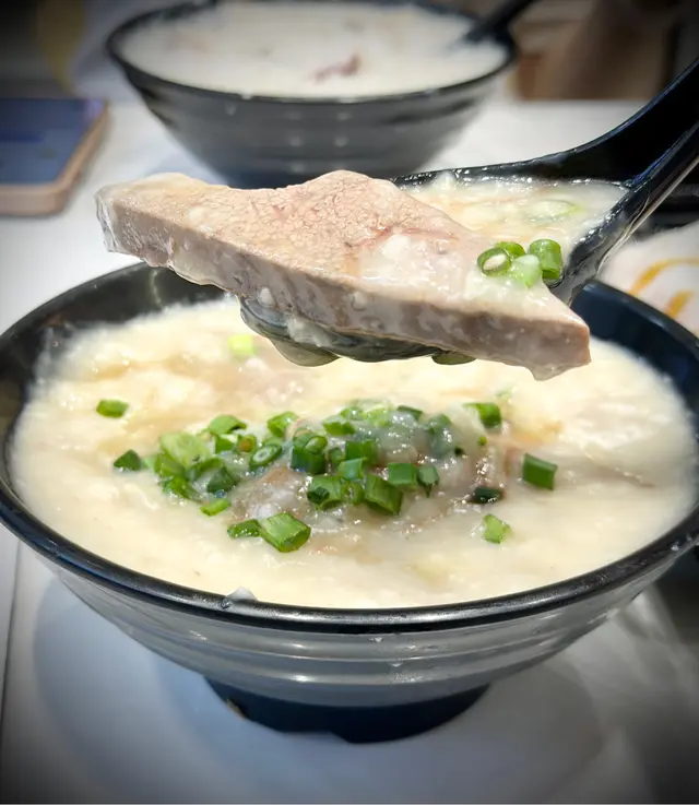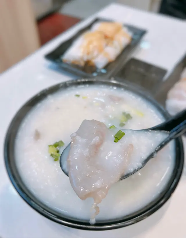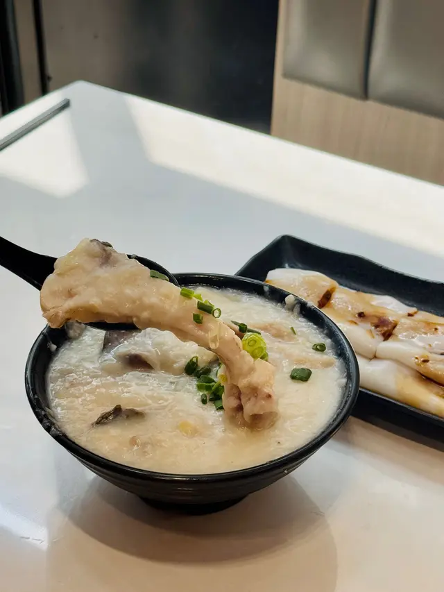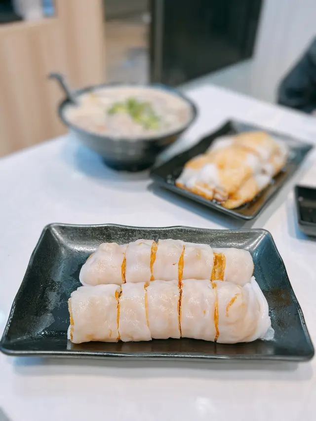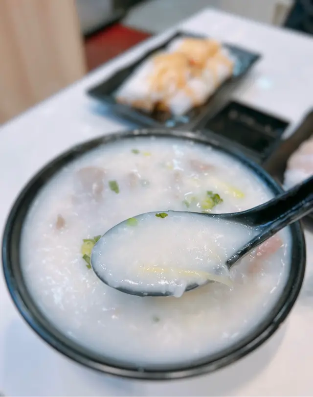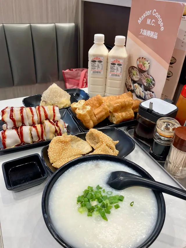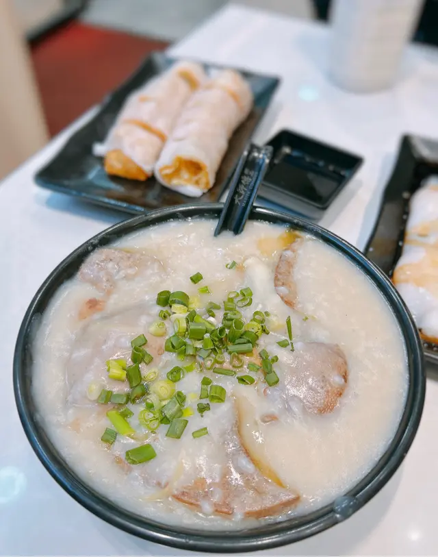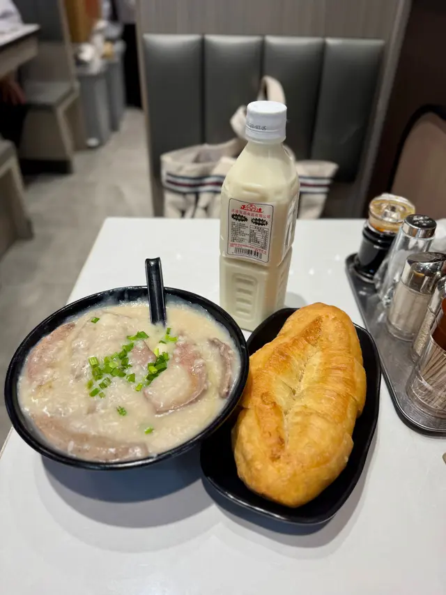 2025年8月21日 星期四今晚個肚仲脹脹地,想食得清淡少少,所以就係石門既呢間餐廳食下粥餐牌除咗粥品之外,仲有提供小食同麵,而且粥品都分開咗,即熟粥同生滾粥,款式頗多,價錢都好平民,我哋就每人叫左一碗粥,另外再加豆漿同炸兩一黎到既係生菜粟米瘦肉粥,粥底煮到綿密滑溜,入口即化,粟米粒粒香甜,帶出天然鮮味,而瘦肉就切得薄身,冇筋唔鞋口,吸晒粥香至於生菜爽脆,加添左清新感,整體味道溫和舒服另一個粥就係窩蛋碎牛粥,係港式粥品入面嘅人氣之選,簡單但滋味十足。呢碗粥用生滾粥底,米粒煮到化開,呈奶白色,入口滑溜,碎牛肉經過醃製,肉香撲鼻,完全唔會有腥味而最吸睛嘅係中間嗰隻窩蛋,蛋黃半熟,輕輕攪拌後令整碗粥變得更加香濃順口呢個係餐廳人氣炸兩腸粉,炸兩入口即化,腸粉皮滑得似絲綢,油炸鬼酥脆鬆化,咬落去有種輕微爆裂感而甜豉油滲透每層,鹹甜交錯,令整體味道更有層次,每啖都帶點煙韌與香脆交織,食落去唔會膩,反而愈食愈開胃最後仲有豆漿,入口順滑,豆香濃郁但唔會過火,帶有天然甘甜,飲落去清爽又唔膩冰凍版本就特別醒神,啱晒配粥或者炸物,有種溫柔中和嘅效果埋單一百蚊都唔洗,真係好抵!!…查看更多