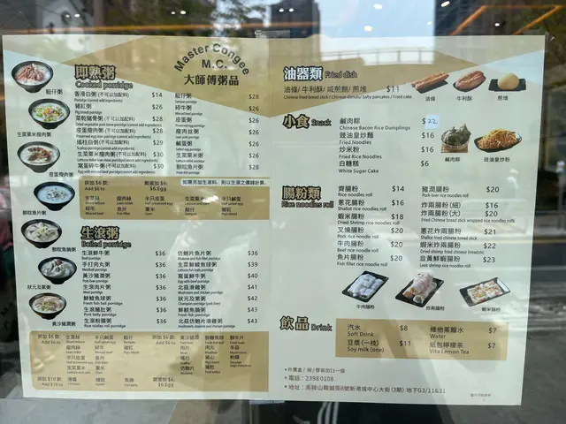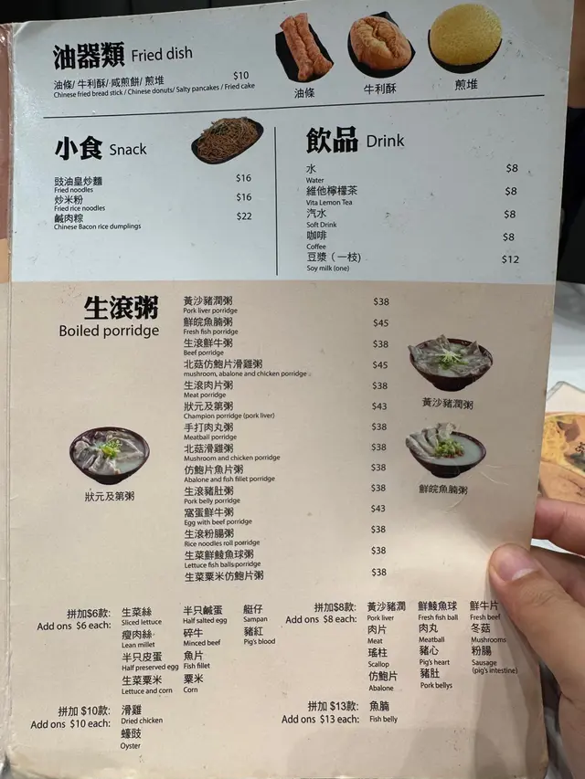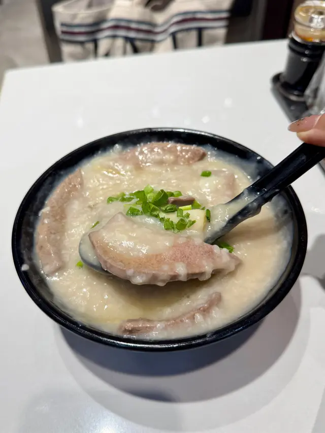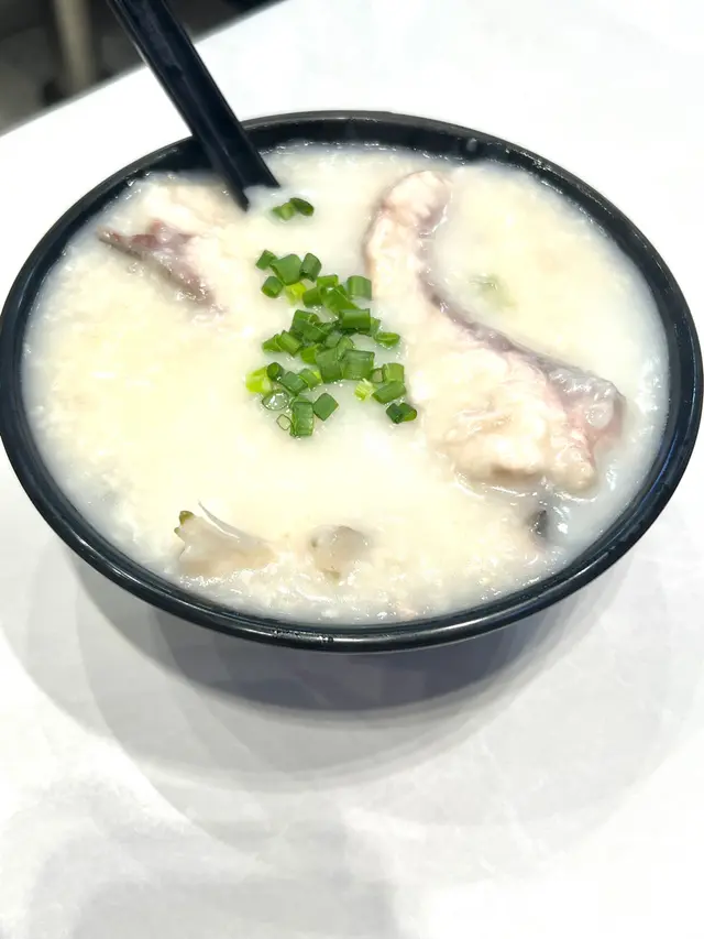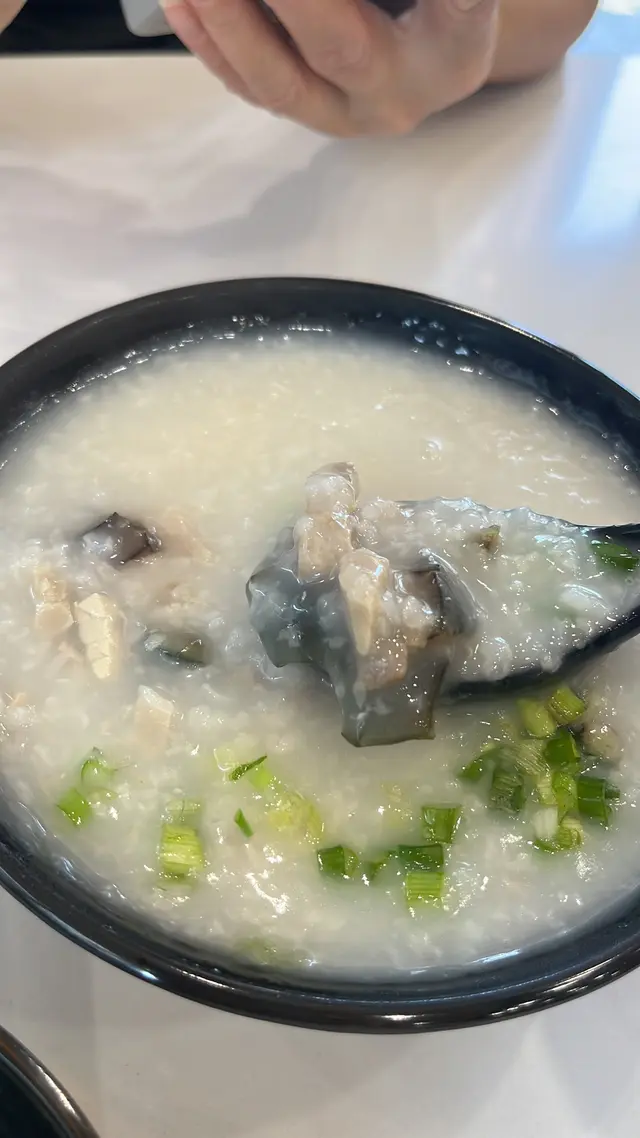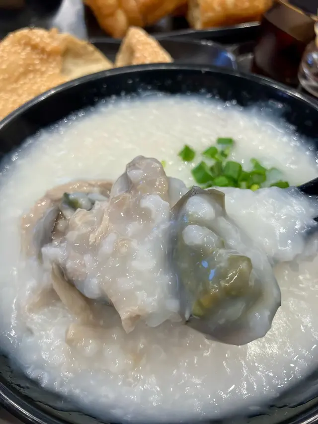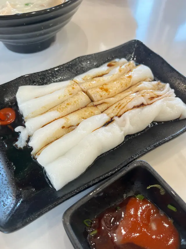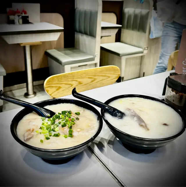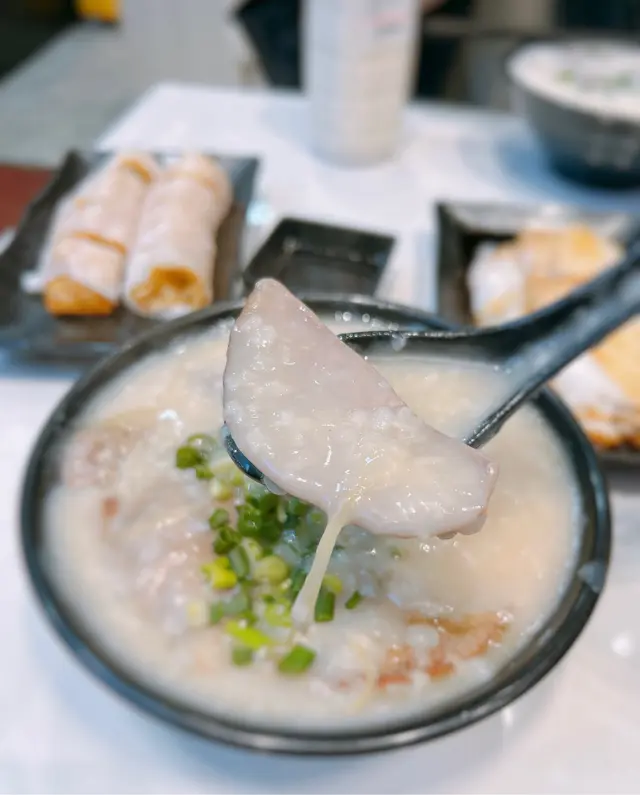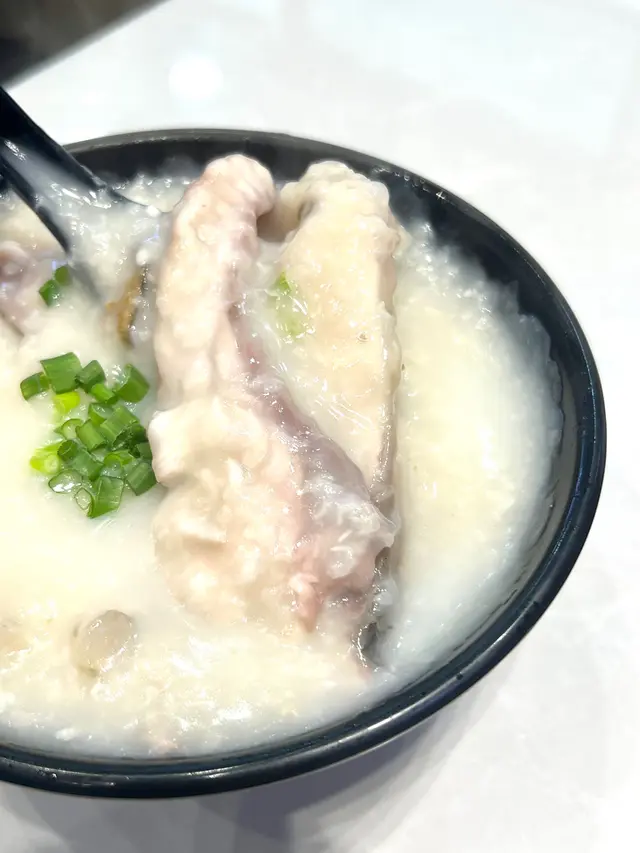 2025年8月21日 星期四今晚個肚仲脹脹地,想食得清淡少少,所以就係石門既呢間餐廳食下粥餐牌除咗粥品之外,仲有提供小食同麵,而且粥品都分開咗,即熟粥同生滾粥,款式頗多,價錢都好平民,我哋就每人叫左一碗粥,另外再加豆漿同炸兩一黎到既係生菜粟米瘦肉粥,粥底煮到綿密滑溜,入口即化,粟米粒粒香甜,帶出天然鮮味,而瘦肉就切得薄身,冇筋唔鞋口,吸晒粥香至於生菜爽脆,加添左清新感,整體味道溫和舒服另一個粥就係窩蛋碎牛粥,係港式粥品入面嘅人氣之選,簡單但滋味十足。呢碗粥用生滾粥底,米粒煮到化開,呈奶白色,入口滑溜,碎牛肉經過醃製,肉香撲鼻,完全唔會有腥味而最吸睛嘅係中間嗰隻窩蛋,蛋黃半熟,輕輕攪拌後令整碗粥變得更加香濃順口呢個係餐廳人氣炸兩腸粉,炸兩入口即化,腸粉皮滑得似絲綢,油炸鬼酥脆鬆化,咬落去有種輕微爆裂感而甜豉油滲透每層,鹹甜交錯,令整體味道更有層次,每啖都帶點煙韌與香脆交織,食落去唔會膩,反而愈食愈開胃最後仲有豆漿,入口順滑,豆香濃郁但唔會過火,帶有天然甘甜,飲落去清爽又唔膩冰凍版本就特別醒神,啱晒配粥或者炸物,有種溫柔中和嘅效果埋單一百蚊都唔洗,真係好抵!!…查看更多