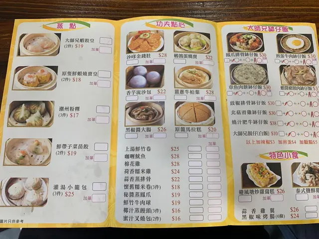 好鍾意食點心,但係唔係好鍾意去茶樓,所以差不多每逢週末我都會去食大師兄。不過最近由於疫情,佢淨係改咗做外賣,冇堂食所以我都少食咗。點心質素係唔錯嘅,不過就一時時,有時人多都會炒車,所以最好少人啲嘅時候先食。例如我試過潮州粉果係夾唔起,一夾就成舊爛咗,一pat野咁好恐怖。環境來講就係好擠迫嘅小店,服務都唔好要求有啲咩,基本上就係家庭式營運,不過呢啲來講我都唔係好執着,最緊要係食物。蝦餃王和燒賣王兩件裝各$18,兩個人食啱啱好,推薦!腸粉都滑嘅,隻隻都唔錯,個人比較鍾意食叉燒腸同埋蝦腸。滋潤紅棗糕$16三件,香甜軟糯。鹹水角外脆內軟煙煙韌韌,$18三件。蒜蓉蝦春卷$20三條,新鮮出爐非常香脆,入邊隻蝦仲要好大隻。馬拉糕$16,呢一款就一時時,有時好好食有時唔好食。避風塘炒蘿蔔糕,少少辣,脆,好惹味!茶剩係得兩款,我通常都係飲普洱,佢啲茶唔好飲,叫做好過飲水。整體來講食得過,性價比極高!平視我兩個人食大概點六至七款點心,埋單$120-130。…查看更多