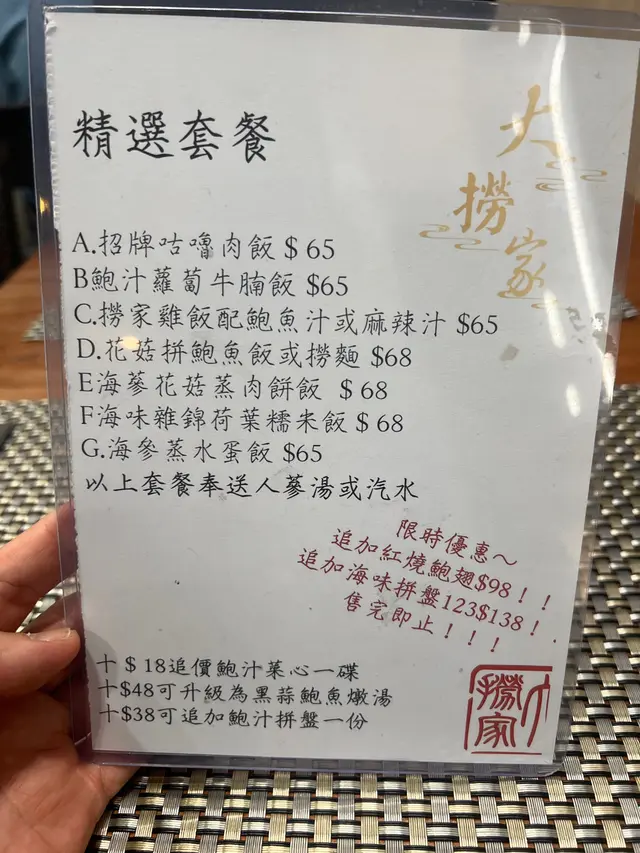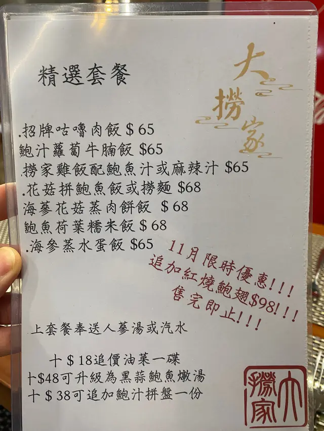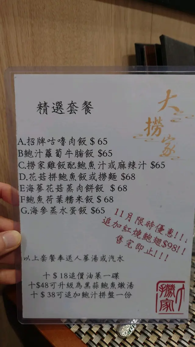 原先諗住食醉藥雞,點知客滿要排隊等。於是走咗入去隔離間大撈家。點咗兩個大套餐:海蔘花菇蒸肉餅 及 蘿蔔花菇鮑魚撈麵 再加一個小食 配炸牛腩。小食先上,滷過嘅牛腩非常入味,唔柴又唔會太肥,非常好食,配鮑魚汁就其實得啖笑,就當冇咁熱氣,如果食得辣配麻辣汁可能會更好,又或者店家研究吓配泰式酸辣醬都應該唔錯。之後就上套餐鮑魚撈麵,賣相OK。但三樣野唔係好夾,首先汁唔夠,做唔到撈麵效果,蘿蔔只係白烚,完全冇鮑汁味,而鮑魚有兩隻,雖然都幾大隻,但都係火喉未夠,唔入味。唯一取勝係平….之後到我自己點嘅肉餅,佢係即蒸,因為等咗好耐,賣相唔錯。但一睇就知出事,我初頭諗佢嘅海蔘應該釀入去肉餅度一齊蒸,結果只係擺面,於是一食落口,又係蔘肉分離,肉餅還肉餅,海蔘還海蔘。肉餅普通唔彈牙都算,最大鑊主角海蔘俾花菇同豉油搶哂味,除咗死咸,我係一啲都feel唔到海蔘嘅存在。簡單嚟講,我只係點咗個花菇肉餅飯….時人話香港經濟差,無可否認大環境真係好麻麻,但自身問題都好重要,由入座都俾錢離開,我同家人係包場,講緊係星期六晚深水埗7點,隔離醉藥雞同文記排哂長龍,就算你冇小紅書加持,都唔會晚市連一個客都冇呀?唯一解釋就係店員問題,店內一男一女職員。由入座到埋單都只係得個女職員做野,男果個成個古惑仔咁成碌木企喺門口,聲都唔出多句,就算有人喺門口裝裝吓都係頂多講句埋邊有位就算,唔係趕客就係錢多,請著呢啲伙記真係自求多福(希望佢係老闆啦)!唯一做野果個女店員,勁後生同靚女,似讀緊書嘅學生妹,講野怕怕醜醜細細聲。作為一個時常行深水埗嘅獨男,除咗高登班濃妝豔抹嘅筆電promoter ,呢個女店員絕對秒殺成條福榮街嘅食肆,絕對係深水埗之花,選港姐物姐實贏。我係老闆一定擺佢出門口,派吓傳單講兩句肯定引唔少毒撚入去食鮑魚…唔怕生壞命,最怕改壞名。撈家?美女?鮑魚?或者因為咁原因唔敢定唔俾走上前台吧!唔好心邪,我都係下次過隔離叫雞算。…查看更多