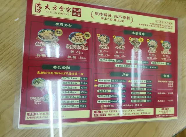 大方食家 (大埔) 網址: https://s.openrice.com/QrbS0KPGA00 地址: 香港大埔富善街6-14號永祥大廈地下D9號舖 電話: +852 25136828