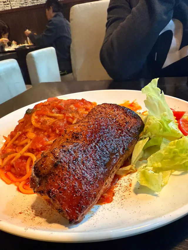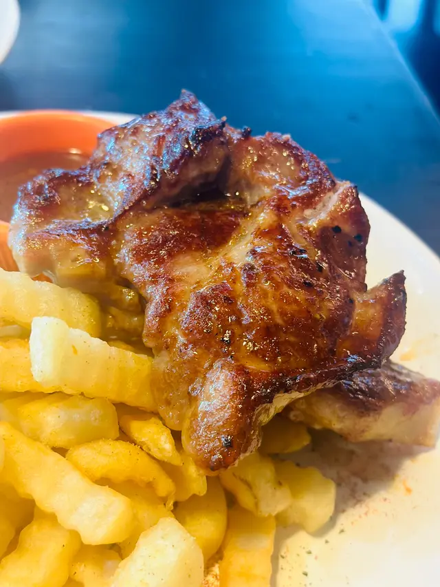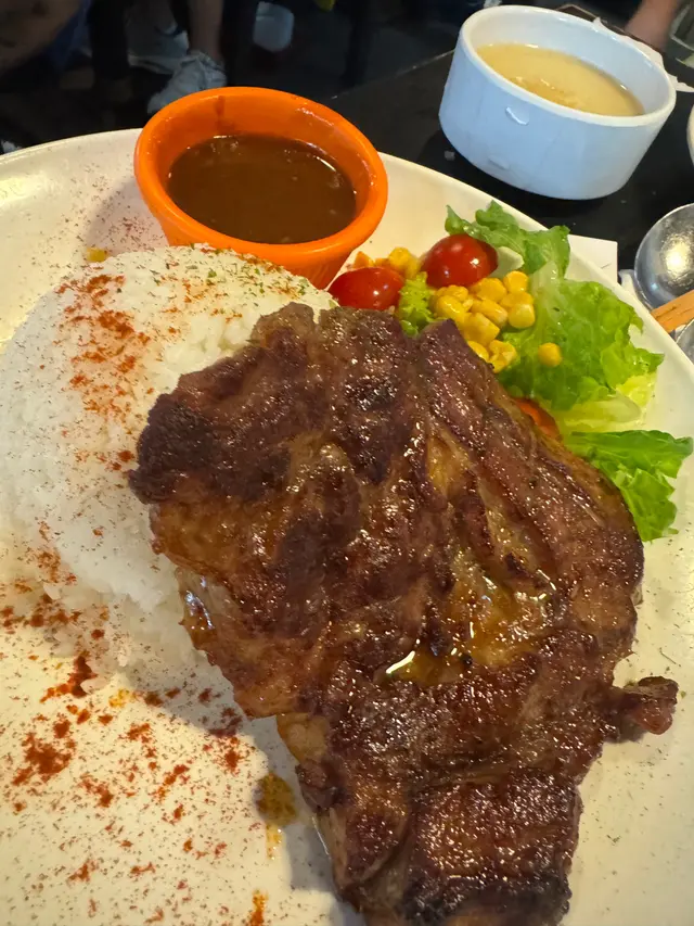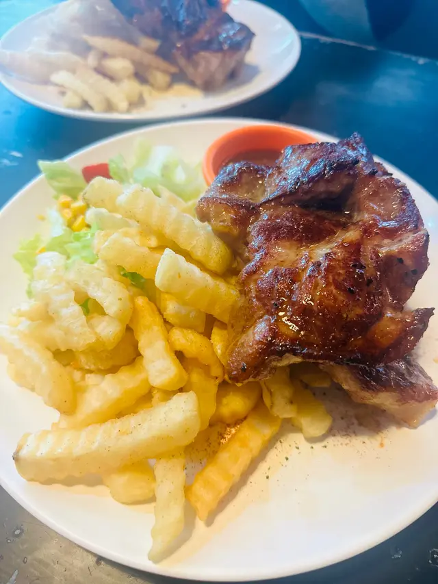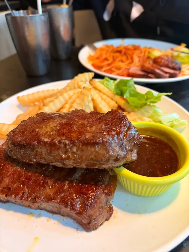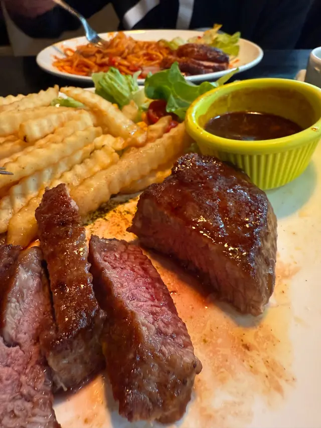 今次決定6點前就去到,估唔到6點去到已經滿座,都係要排隊🙈好彩最終都食到我地想食嘅野🥳紐西蘭牛仔柳配薯條牛仔柳有兩大塊,份量非常充足🍖你地揀左7成熟,牛柳唔會過生,食落非常淋身😎牛仔柳兩面煎到有少少脆,肉味濃郁,食完大滿足😆炭燒黑毛豬配意粉黑毛豬就無牛仔柳咁大塊,都係煎到好香脆,比起牛仔柳有咬勁,意粉用忌廉汁煮過,感覺上淨係食個意粉都好滿足😋由於兩款肉一齊食,所以感覺上黑毛豬嘅味就係無牛仔柳咁突出,但意粉方法就令佢加返唔少分數🤪入座後會送上一碗餐湯,今次係薯仔湯,餐湯非常足料,有唔少薯仔粒查看更多