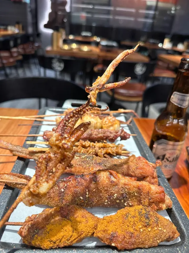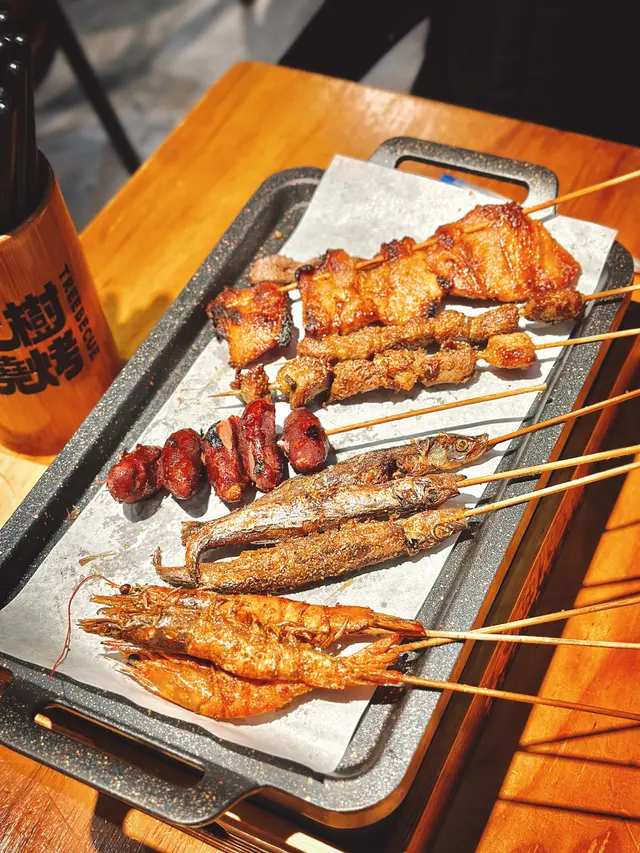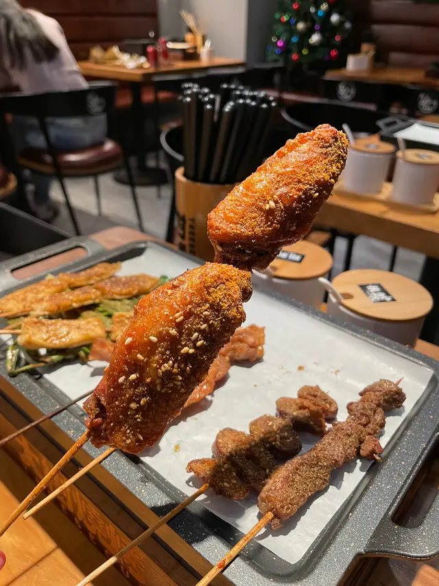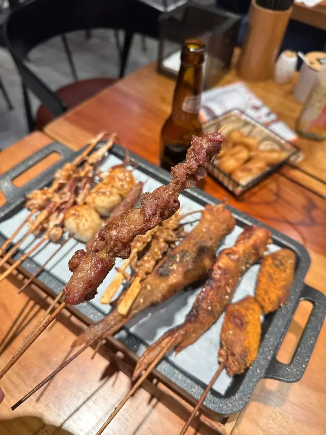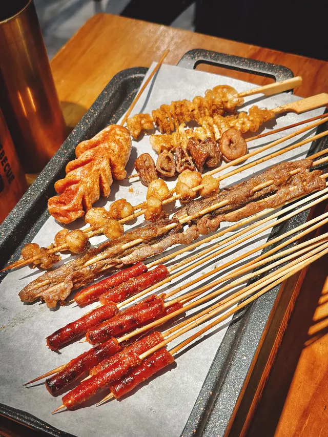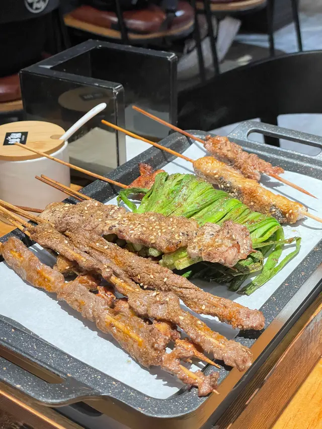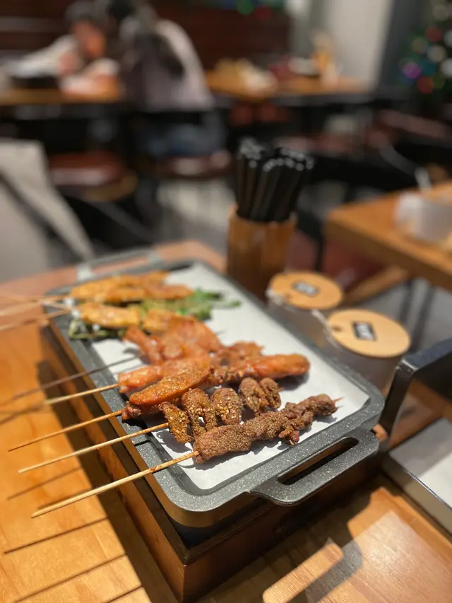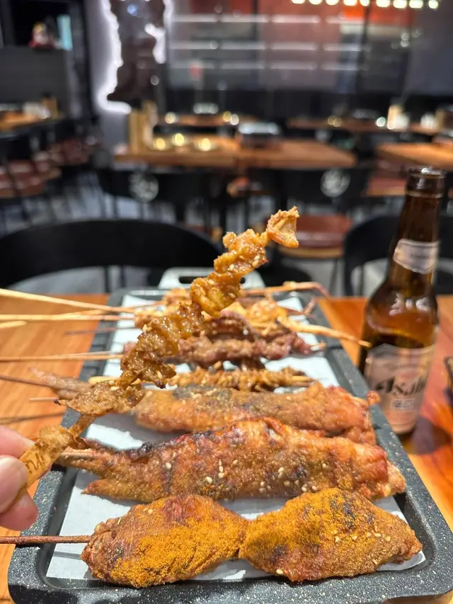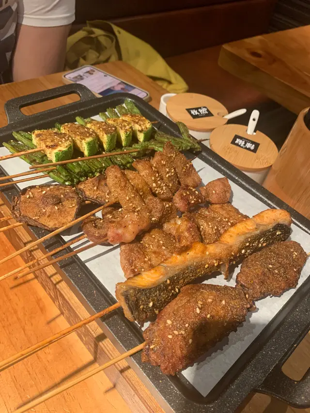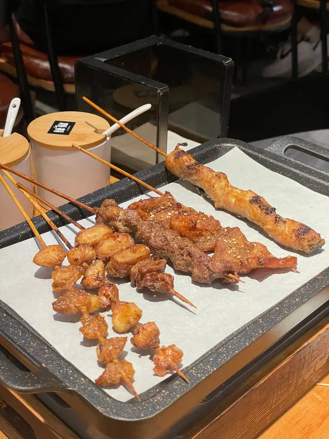 第一次喺香港食呢類型嘅串燒店,呢間餐廳嘅串燒種類好多好齊,除咗串燒之外仲有啲一窩窩嘅食物同埋甜品,不過今日我同朋友就主要食串燒啦。落完單之後店員會喺鐵板下低點着兩個蠟燭,串燒嚟到就會放喺鐵板上面,咁就唔怕食得太慢啲串燒凍晒。調味料方面,餐廳準備咗辣椒粉同埋孜然粉,方便食唔同辣度嘅人可以調校適合自己嘅口味。第一輪嘅串燒到咗啦,我哋第一輪叫咗豬頸肉,雞肉串,烤翠玉瓜,烤秋葵,烤多春魚,同埋金菇肥牛卷。第二輪嘅食物,我哋叫咗燒茄子,花甲粉,同埋粟米串。豬頸肉同埋雞肉串都有醃過,而且燒得好香口,上面落咗少少孜然粉,不過我個人口味鍾意重孜然粉,所以我就自己落多咗好多。烤翠玉瓜本身個翠玉瓜都夠甜,燒完之後好爽甜,唔會乾晒,翠玉瓜係厚身嘅,唔係切到好薄,所以只叫咗一串翠玉瓜都唔會唔夠喉。秋葵我本身就唔食嘅,但係$28有兩串,我個人覺得幾抵食。金菇肥牛卷一串有三嚿,朋友唔食金菇嘅,我一個人食咗三嚿,開始有啲飽😂。雖然金菇嘅尾尾有少少燶左,但可以接受,因為比牛肉包住嘅部份入邊咬落係有菇汁嘅。多春魚一份有三條,食落唔腥,燒得好脆,多春魚好長要分兩啖先食得晒。呢條燒茄子個名叫做大大大茄子,一上到枱真係冇改錯名喎😂,真係好大份,上面鋪滿咗蒜蓉,茄子肉撈埋蒜蓉一齊食,真係好好味,食到最後我不停用筷子刮個茄子,一啲都唔想浪費,因為實在太好味。🥹粟米串一份係有10串嘅,我第一次食逐粒粟米串嘅串燒😂啲粟米本身好甜,但係又甜甜鹹鹹辣辣個味道好特別,所以我同朋友眨吓眼就清咗10串粟米。有一次我喺food court入邊食過花甲粉,一啲味都冇,今次係我最後一次俾機會花甲粉呢一個食物,好彩冇令我失望😎。 一落枱已經聞到陣麻辣味,蜆肉份量多,蜆肉嘅份量絕對唔係濫竽充數,每一粒都好鮮甜。食咗粒蜆肉之後,我用返個蜆殼嚟勺花甲粉嘅湯飲😂,個湯除咗鮮甜之外,仲飲到麻辣嘅味道,麻辣嘅比例,我個人覺得麻味比較辣味多,個人嚟講相當鍾意。粉絲就更加唔使講,吸晒啲湯汁,我覺得餐廳可以整一個選項俾客人選擇粉絲加底。😂…Read More