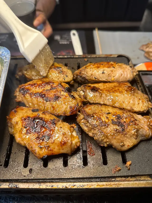 位於大欖號BBQ場,以前一到秋天就會成日去幫襯港式燒烤。今次嚟銅鑼灣,試下係室內大欖燒烤串串,地方好大好整潔👍$248 午市升級任食,有安格斯牛及韓國蠔任燒。出面仲有雪櫃放左大量蔬果,串燒,雞翼,丸類。基本上港式燒烤有嘅佢都齊晒🤗醬汁以泰式蒜蒜甜辣醬最惹味💯📌特別推薦招牌雞翼,有雞煲味、土匪味、麻辣味,全部都好入味,燒完之後啖啖肉,起碼要食十隻😎📌韓國蠔多汁鮮味,大小適中。安格斯牛頸脊細細片,燒幾下就食得,牛味濃郁。📌牛舌點完又點,有原味及鹽味,爽口有嚼勁口感,一定要試。📌小食要QR code 點餐,香芋地瓜球,忌廉薯餅及溫泉蛋豬油撈飯必叫,燒肉拌飯最正!兩小時任食足夠兩人放任地食,烤爐火力好夠ดูเพิ่มเติม