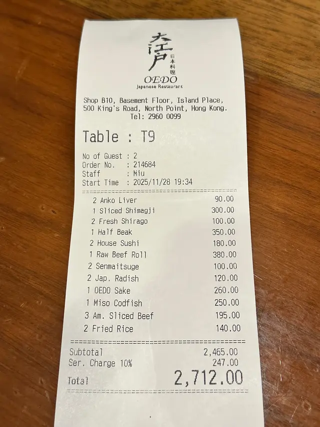 大江戶日本料理 (北角) 網址: https://s.openrice.com/QrbS05Hq000 地址: 香港北角英皇道500號港運城地庫B10號舖 電話: +852 29600099