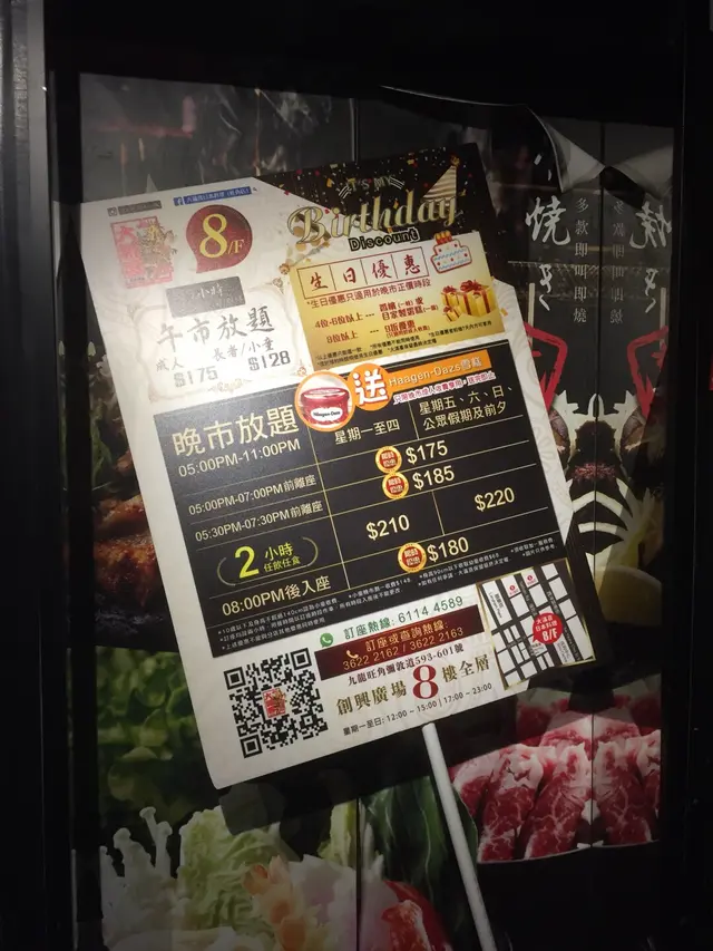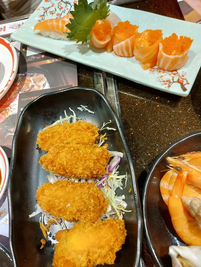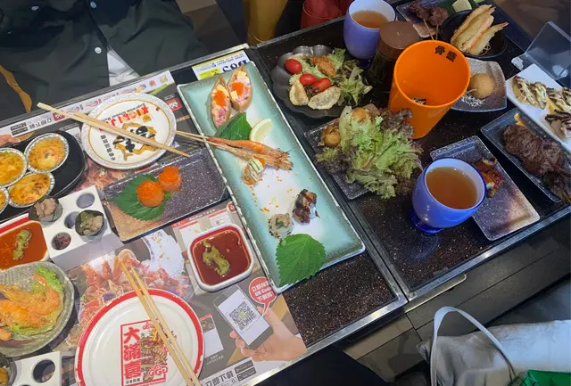 🤔旺角|大滿喜 #丁丁香港探店 200HKD地址:旺角彌敦道593-601號創興廣場8樓这边类似的日料自助有很多横向测评两家去的人都不少的店🥸上菜速度也都还🉑️基本午市价格差不多而且都是三小时区别主要是个别菜的味道和品质先说个建议我每次都会先把想吃的都点一圈最后吃完基本上就没肚子加菜了一般这种店“刺身类”平时都还不错的!不然评价一定会特别差劲开不下去区别大多是在其他菜品上“菜”类的比如「牛仔肉」「冬菇花膠」「铁板三色香辣炒牛柏叶」这种点一份就好一般「牛舌」「天妇罗」都不会好吃「盐烧有机菠萝」解腻可以点一点“锅”类的看个人喜好 牛肉锅是寿喜锅汤底偏甜吃日料自助我一般都会喝热茶不用饮料占热量也不喝有气的撑肚子下面是两家的对比御满屋「牛肉粒」「冬菇花膠」还不错相比大喜屋而且「movenpick雪糕」是哈根达斯要点的大喜屋「羊架」更好吃 雪糕是雀巢但是选择更多(糯米糍还有榴莲冰棍!)…查看更多