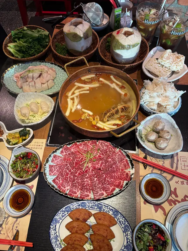 #MC帶你去荃灣.香港人一年四季都鍾意打邊爐,而且港式火鍋必定有游水靚海鮮,依間本地品牌火鍋店就以足料靚湯底及高質靚食材為招徠!➖✨ 大紅袍火鍋料理.餐廳主打港式火鍋,提供超過20款火鍋湯底,以及超過100款火鍋配料;店內行中國風設計,裝潢傳統雅緻,搭配青磚牆、紅燈籠、中式案几,以及書法掛畫等,古式古香,而且地方寬敞舒適,空間感大。➖🥢 椰子雞湯底|$168 ✨招牌菜式✨.真材實料超鮮甜!湯底用上兩個原個椰青水,搭配半隻新鮮三黃雞熬湯,再加入五指毛桃、紅棗、杞子等藥材,鮮甜滋潤。(建議打邊爐前先飲一碗湯,非常滋補!)➖🥢 極上牛肉刺身|$188 ✨人氣之選✨.刺身級牛肉雪花均勻,夾起薄薄一片牛肉與少少洋蔥絲,蘸一點洋蔥酸汁,牛肉入口即溶,口感非常軟嫩充滿脂香,絕對值得一試。➖🥢 頂級安格斯牛頸脊|$278/例.牛頸脊脂肪比較少,輕灼5秒就可以,入口肉味濃郁有嚼勁。➖🥢 廣島蠔|$118.一份八隻廣島蠔,蠔身飽滿肉質厚實,鮮甜蠔味濃又無腥味,煮熟後又無過份縮水,好滿足!➖🥢 珊瑚蚌|$118.珊瑚蚌輕灼至卷曲就可以,爽脆彈牙,由於珊瑚蚌都沒有膽固醇和脂肪,所以非常健康。➖🥢 桂花蚌|$138.桂花蚌大大條,份量好足料,搭配椰子雞湯,入口好鮮甜而且爽口彈牙。➖🥢 招牌餃(黑松露蟹肉餃)|$54/半份.半份招牌餃有三大隻,皮薄餡靚,蟹肉豬肉餡料好飽滿,加上陣陣黑松露味,好好食!➖🥢 手打檸檬茶|$28.大大杯嘢飲!香水檸檬味道突出,而且茶味香濃,解膩一流。➖🥢 餐前小食|$20/份.➖🥢 醬油|$15/位.➖➖➖➖➖➖➖➖➖➖➖➖➖➖🈹 限時優惠.身份證上含有 1,5,7,9 四個字其中一個或以上即享有以下優惠:- 1個字9折- 2個字85折- 3個字8折- 4個字75折* 不計算重複及身份證括號內號碼* 星期日、公衆假期及節日不適用* 優惠不可與其他優惠/折扣及現金券同時使用➖➖➖➖➖➖➖➖➖➖➖➖➖➖…查看更多