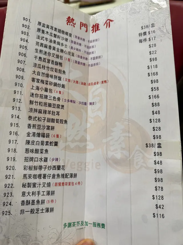 逢初一十五呢都會有好多人嚟呢一間大自然素食度食齋嘅,所以我哋都特登今次去咗彌敦道750號子俊中心嘅呢一間大自然食嗰度訂位,因為呢如果唔訂位嘅話呢可能要等好耐同埋都未必會有位俾到啲人即刻Walk in入去。今次我哋差唔多八個人就食咗八個菜啦,分別呢就有鮮竹粒斑腩豆腐煲,藍莓柚子田園鮮果沙律,鬆化芋頭魚,原隻鮮菠蘿咕嚕肉,蜜汁叉燒王,燒汁雜菌焗牛仔骨,豉油王雜菌炒麵,非一般芝士薄餅,咁全部菜式加埋一嘅服務費都係九百零蚊$1000有找。而野食方便其實佢都整得幾似嘅個樣,但係個味道方面始終都係用味精味素去搭救啦,所以素食呢啲嘢就真係見仁見智啦,有人喜歡有人不喜歡。我中肯d講一句就係話,素食嚟講佢都算煮得多樣化,有好多樣選擇,而且唔會食到成日味精嘅感覺!查看更多