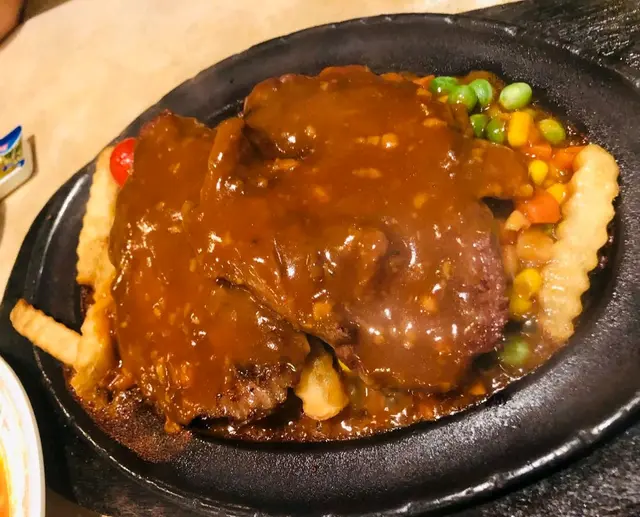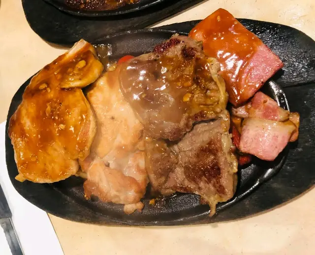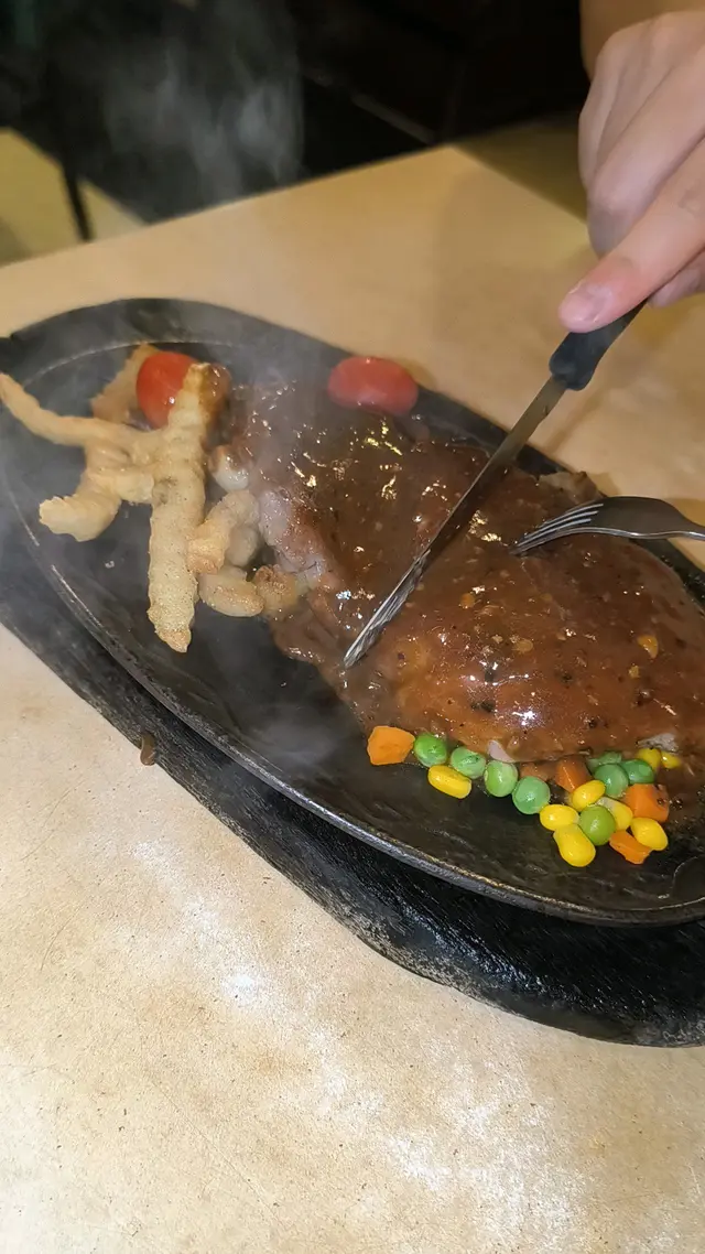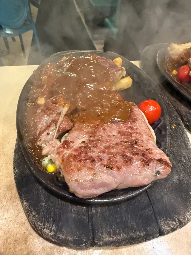之前都有經過, 但一次都未食過😅, 今晚就過來試一下, 本身比安排坐四人枱要同人搭枱, 但真係張櫈太硬, 唔係坐得好舒服🤣, 見到有二枱卡位也一起離坐, 就問店員可否調去卡位😜, 侍應望下出面無人等位, 就叫我哋坐過去😀, 望下餐牌都有幾多選擇, 再望下晚餐餐牌, 好似都幾吸引😄, 就叫左二個什扒餐, 一係要牛尾🐂湯, 一係要忌廉粟米🌽, 就叫左二個忌廉粟米🌽湯, 一個什扒要蒜茸🧄汁, 一個什扒要黑椒汁, 我唔食牛, 再將牛扒🐂變雞扒🐔或豬扒🐽, 等左一陣湯送上, 也有一個迷你餐包仔🍞, 忌廉湯飲落好香好滑🥰👍 麵包🍞雖然望落個樣麻麻地, 但食落有d軟熟有d温暖, 都算係合格🤪😆, 再隔多一陣送上二個什扒, 好有儀式感😂😂🤣, 係有煙升起有聲再個只, 夠晒有氣氛😘😝, 加d茄汁食薯條😍, 熱辣辣☺️, 有坑紋的薯條再加茄汁好味👍, 望到有2件雞扒🐔, 一件豬扒🐽, 有一條腸, 有细细塊🥓煙肉就比左家人, 切件🐽豬扒好大塊, 唔係太肉汁, 但食落有d肉味, 唔錯🥰👍, 腸仔就正常味道, 雞扒🐔都好厚肉, 食落都有肉味, 也是唔係太差, 不過由於份量都唔少, 所以其中一件扒都食唔哂😂, 黑椒係香, 唔算係辣😍, 再之後叫左一杯熱🍋檸茶, 一杯奶茶少甜, 家人說唔係港式奶茶, 係西式, 所以個人覺得麻麻地, 我自己就飲熱🍋茶, 夠熱, 茶味夠濃, 埋單無加一都算幾好, 如果下次想食鐵板, 都會諗起依度😘😝, 但大家要留意, 依度沒有其他電子支付, 只接受現金💰…查看更多