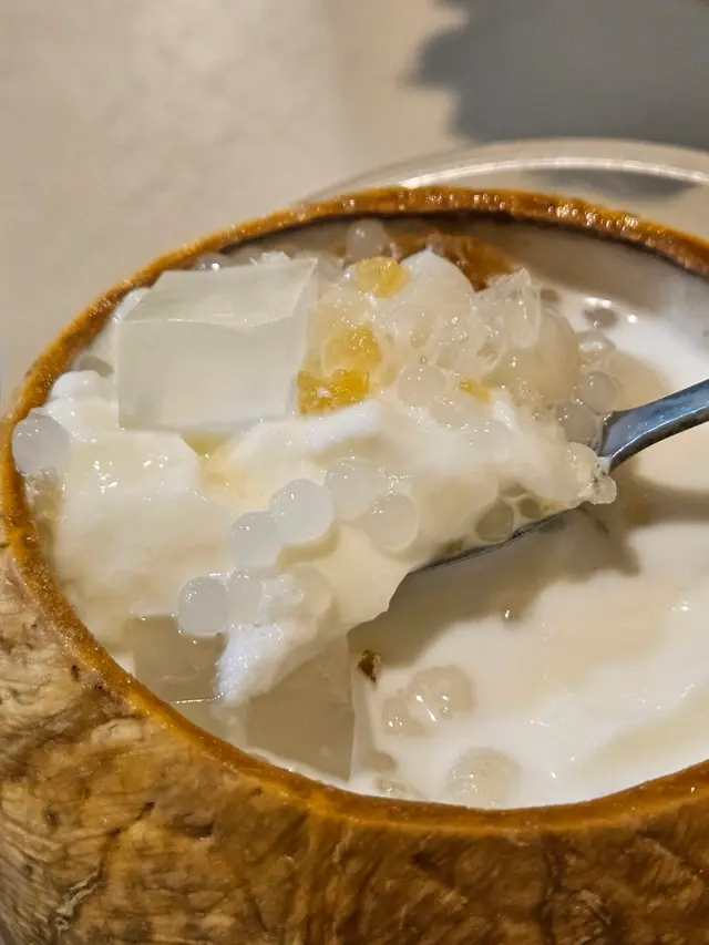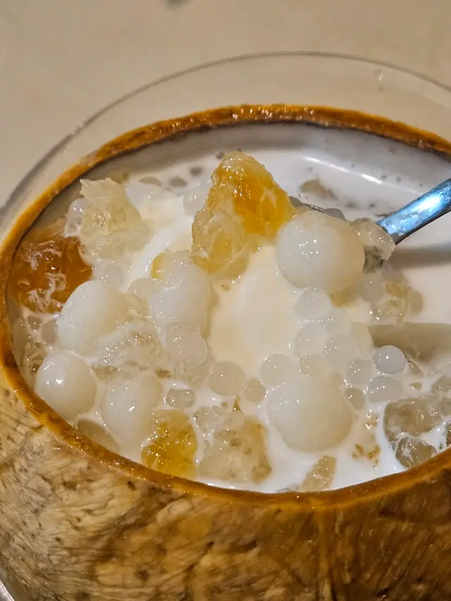 記得上次週末嚟食店外大排長龍,今次平日夜晚過嚟幸運地唔洗等好耐就有位。▫️椰皇芋圓燉蛋白 - 熱 ($55) 4/5呢到嘅芋圓望落似係自家製,形狀比出邊糖水舖嘅扁身,本身以為咁扁會冇咩咬口,點知食落都好煙韌。芋圓真係有好香嘅地瓜同紫薯味,最驚喜係伯爵茶味,茶味超出又夠特別!燉蛋白材料好豐富,除咗滑捋捋嘅燉蛋白仲有小丸子同西米,加埋芋圓食完真係飽到上心口。但略嫌椰汁味唔算香濃,椰皇入面嘅椰子肉都冇乜味,如果唔係就perfect!▫️椰汁紫米露 - 凍 ($24) 4/5椰汁味比燉蛋白更香,紫米軟糯有咬口,呢個價錢食到一碗透心涼嘅糖水真係好抵!Overall rating (5粒⭐️為滿分)味道:⭐️⭐️⭐️⭐️服務:⭐️⭐️⭐️⭐️環境:⭐️⭐️⭐️性價比:⭐️⭐️⭐️⭐️查看更多