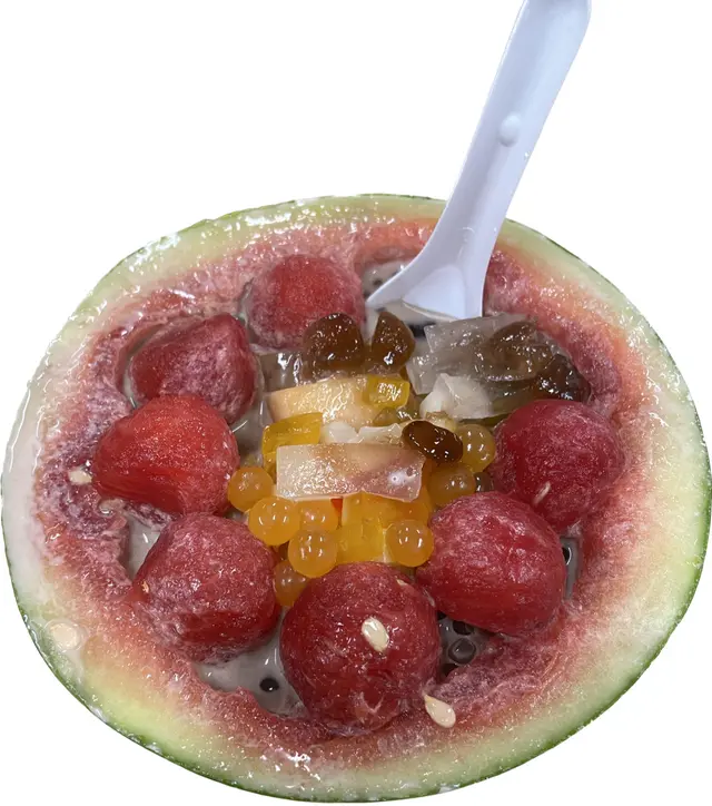 呢間甜品店已經幫襯過好多次,不論堂食定外賣,不過今次試一樣新嘢,係之前未食過嘅。就係雪糕雜果西瓜盅價錢好似係$50 ,另外仲有一球雪糕,可以自己選擇味道,如果是外賣,雪糕會另外裝起。呢個西瓜盅好足料,但單單講西瓜,其實唔算多,係得面頭見到果啲西瓜波波,裏面其實已經唔係西瓜,係其他一般甜品嘅配料。個西瓜只係一個容器,唔係入面所有西瓜都在這個糖水內。但是無論造型,和味道, $50來說都是性價比高的甜品,夏天吃行消暑。查看更多