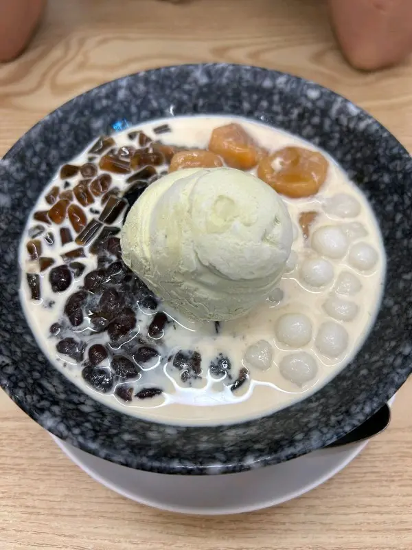 夜晚同朋友喺附近食完晚飯,過嚟食糖水。糖水價錢合理,好多人排隊,不過好快就有枱。叫咗芒之戀、紅豆綠茶綿綿冰、榴槤豆腐花。朋友點嘅榴槤豆腐花,榴槤分量多,豆腐花正常發揮,芒之戀裏面嘅小丸子份量都好多;自己點嘅紅豆綠茶綿綿冰,綠茶味都好夠,配料亦都好多,有齊丸子、芋圓同紅豆,芋圓夠煙韌,比較鍾意食綠茶芋圓,食完甜品啱啱好,滿足~查看更多