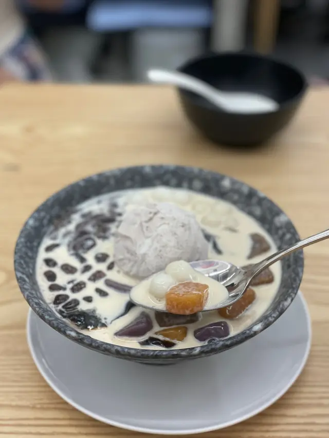 食完飯都食糖水,想食果間排長龍😅行過呢間好似唔錯喎,又落雨就入去試下甜品有中式糖水,又有西式甜品,選擇都好多,呢個雪糕芋圓同椰王桃膠燉蛋白都好好食原來呢間糖水舖好出名,仲有分店㗎查看更多