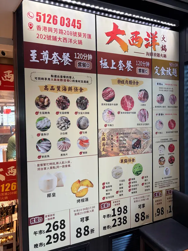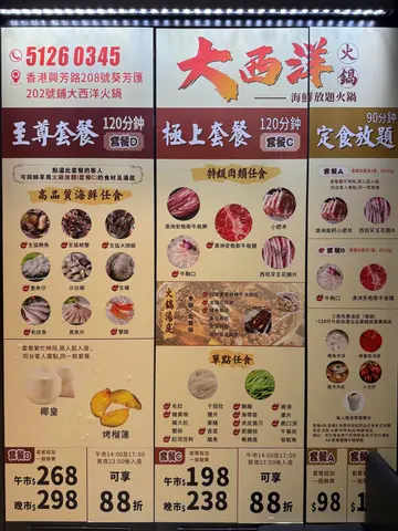放工約fd打邊爐搵食,呢度真心抵食!一個價任食到飽,大西洋火鍋興芳路208號葵芳匯2樓202號舖放工約fd打邊爐搵食,呢度真心抵食!一個價任食到飽,仲要海鮮+熟食+火鍋料多到眼花撩亂,絕對係「抵食夾大件」之選🔥🌟必食推薦🌟🦞熟食區超驚喜:· 麻辣小龍蝦香辣過癮· 香蒜燒蠔蒜香爆棚· 酥炸魷魚鬚同豬腳薑超入味· 串燒惹味熱辣辣· 最估唔到有燒榴槤!榴槤控必食唔洗搶~🐟海鮮水缸區:羅氏蝦生猛彈牙、鮑魚同帶子仲識游水!季節限定仲有大閘蟹,全部即撈即淥正到爆!(大閘蟹代蒸)🍲火鍋料應有盡有:靚牛/豬/羊肉任點,丸類、蔬菜款式多,最正係有個清甜椰皇水,即開即飲超解膩!🍻飲品區都唔輸蝕:茶類/果汁/啤酒任斟,仲可以手機掃碼落單,超方便~總結:食物質素絕對對得住價錢,服務態度唔錯,大胃王同海鮮迷絕對可以嚟大擦一餐!👏📍位置:葵涌葵芳匯2樓💸價錢:親民價錢超高性價比🦀貼士:季節性海鮮會轉款,建議預早book位!#大西洋海鮮火鍋 #葵芳美食 #放工聚餐 #任食火鍋 #海鮮放題 #抵食之選要海鮮+熟食+火鍋料多到眼花撩亂,絕對係「抵食夾大件」之選🔥🌟必食推薦🌟🦞熟食區超驚喜:· 麻辣小龍蝦香辣過癮· 香蒜燒蠔蒜香爆棚· 酥炸魷魚鬚同豬腳薑超入味· 串燒惹味熱辣辣· 最估唔到有燒榴槤!榴槤控必食唔洗搶~🐟海鮮水缸區:羅氏蝦生猛彈牙、鮑魚同帶子仲識游水!季節限定仲有大閘蟹,全部即撈即淥正到爆!(大閘蟹代蒸)🍲火鍋料應有盡有:靚牛/豬/羊肉任點,丸類、蔬菜款式多,最正係有個清甜椰皇水,即開即飲超解膩!🍻飲品區都唔輸蝕:茶類/果汁/啤酒任斟,仲可以手機掃碼落單,超方便~總結:食物質素絕對對得住價錢,服務態度唔錯,大胃王同海鮮迷絕對可以嚟大擦一餐!👏…查看更多