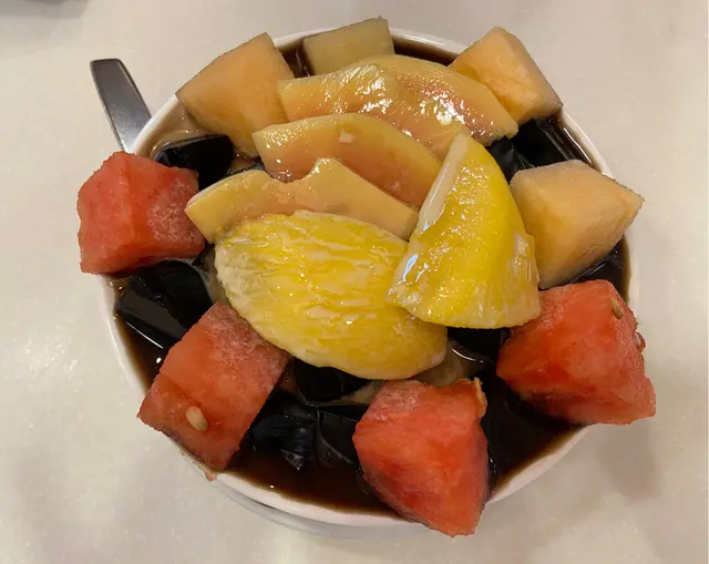 雜果涼粉生果係新鮮切出嚟嘅份量正常有芒果 西瓜 哈密瓜 同埋 木瓜椰汁紫米露味道正常餐廳係以麥兜做主題嘅周圍都可以見到麥兜同佢啲朋友嘅公仔連牆上邊嘅裝飾 佈置都係架支持吓社企啦👍🏼查看更多