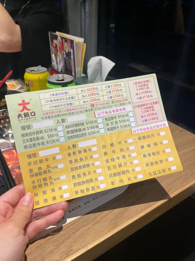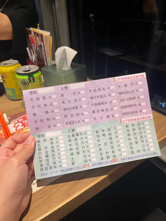 同朋友搵地方食嘢。。。搵到呢間打邊爐。。。任飲任食。。另加50蚊可任坐,無限時。。。店舖位置方便,地鐵站附近。。唔難搵。。服務幾好。。價錢唔貴。。嘢食同飲品選擇算正常。。。有炸魚皮。。涼拌青瓜。。蝦片。。仲有軟雪糕。。食物算新鮮。。落單後送餐快。。唔使等好耐。。合理價錢。。3個人。。平均每人$320。。食足5個鐘。。。油尖旺區算唔錯。。。座位尚算寛闊。。。廁所清潔度都幾好。。有提供洗手液。。之後會再幫襯。。。…查看更多