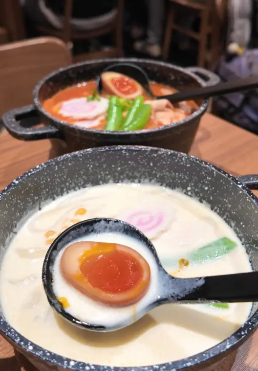 去了荃灣廣場,好久沒食過正品的蕃茄湯麵,點知去到原來已經執了😭我就去返街頭,見到這間餐廳有蕃茄湯烏冬鍋,那晚天氣突然轉冷,有蕃茄又是鍋物,暖笠笠正好!.我點了「秘制豬軟骨拉麵」,烏冬可以轉做拉麵,還可以走我最討厭的青豆,真好!.湯底算濃厚,欣賞這個蕃茄湯不只是有味道而已,還有幾顆林林的蕃茄,美中不足的是有顆是頗生的,可能是剛加進熬湯的。豬軟骨好林好入味,連軟骨也非常林,而且有好多顆豬軟骨!溏心蛋則帶有酒味,味道偏重。整體是中上的🙌🏻.額外點了一道芝士焗野菜,不過也太細份了😂只有手掌心(不計手指)的大小.環境不錯,當日晚市不算人多,希望香港的食肆可恢復起來當日晚餐有加一,$156吃得很飽,不過價錢對我的預算是小貴的..整體評價主食好味,也可以根據食客個人口味調整,很好的體驗,略嫌野菜少許貴,碟的大小只有手掌心(不計手指)的大小,與預期的份量有落差,如果下次再食,不會再叫野菜了~查看更多