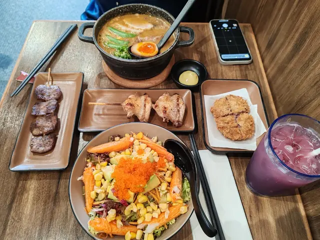 約朋友出嚟食lunch,行行下就入咗呢間新新地嘅試吓,都係啲中午自選套餐,麵、飯+串燒小食咁~上菜份量OK,食埋個追加小食夠晒飽!蟹子冷烏冬水準唔錯,個沙嗲湯有驚喜,第一啖食落去有兒時嘅回憶,湯頭好濃,感覺都好足料煲!配個烏冬勁襯~兩個人食完好滿足😌查看更多