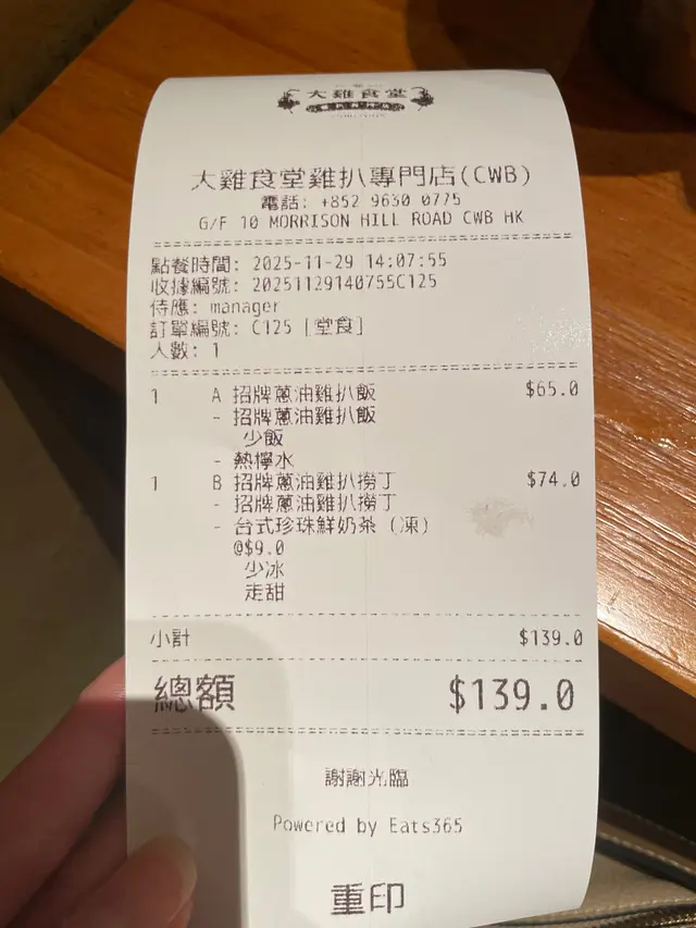 大雞食堂 (銅鑼灣) 網址: https://s.openrice.com/QrbS0EW8D00 地址: 香港銅鑼灣摩理臣山道10號地舖 電話: +852 96300775