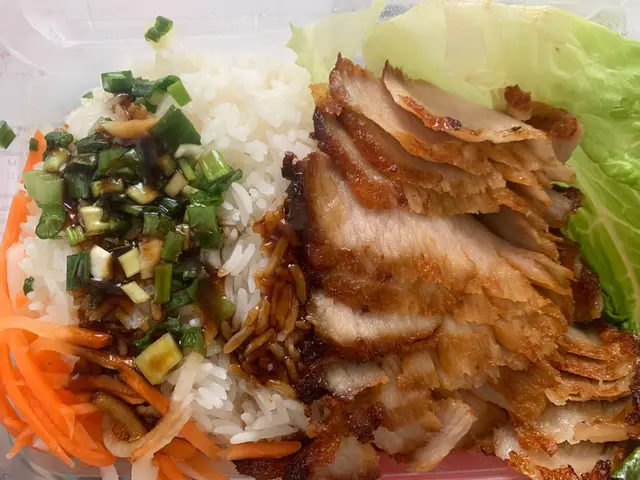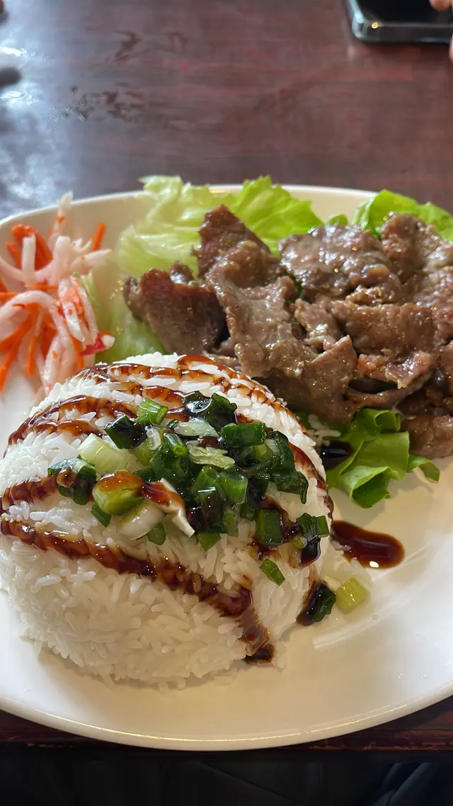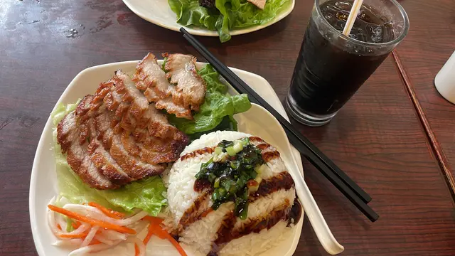 呢道越南香茅牛肉飯真係好清新口感,牛肉切成薄片,好嫩好滑,加上香茅同檸檬汁,就更加開胃爽口。飯粒松散唔黐,好清爽。蔥油嘅香氣令飯更加美味,亦增加咗整道菜肴嘅豐富度。整個菜肴嘅口感好完美,牛肉同飯嘅比例啱啱好,食完之後仲覺得好飽足。如果你鍾意食辣,可以再加啲辣椒片,增加味道嘅層次感。第一口燒豬頸肉配飯時,我就被它的美味所吸引。豬頸肉肉質鮮嫩,表面燒烤得恰到好處,口感非常香脆。搭配上米飯,讓人感覺非常滿足。豬頸肉的肉質非常優質,入口即化,而且經過燒烤後,肉質的香氣更加濃郁。飯粒煮得軟綿,口感十分好,同時也能夠很好地吸收豬頸肉的油脂和肉汁,讓整道菜肴的口感更加豐富。此外,這道菜肴的燒烤醬汁也是一個亮點。它是由醬油、糖、蜜糖、蒜頭和辣椒混合而成,口感甜中帶辣,非常適合搭配豬頸肉和米飯食用。總體而言,這道燒豬頸肉配飯是一道非常美味的家常菜。它簡單而美味,口感豐富,讓人食欲大開。如果你還沒有嚐過這道菜肴,我強烈推薦你一試,相信你一定會愛上它的。查看更多