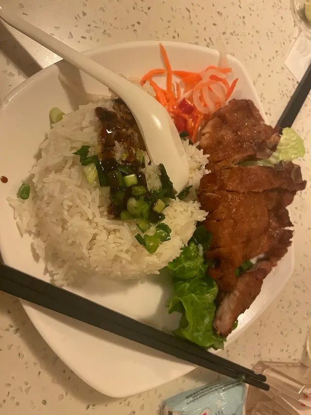 聖誕節前夕,和同事一齊叫外賣午餐,我叫咗炭燒豬頸肉飯,非常足料同好味😄炭燒豬頸肉份量好多,有好多片☺️ 而且味道好惹味,我鍾意先咬一啖豬頸肉,然後再一口白飯,慢慢享受😋 由於豬頸肉實在太香口,所以我好容易就將所有嘅飯都食晒😆🤣同一時間呢個飯有配啲蔥花撈埋豉油,所以如果因為太好味一早食晒啲豬頸肉而得返啲飯嘅話,都可以用豉油蔥花撈飯食埋啲飯,等食飯時啲味道就唔會太淡☺️ 我覺得咁樣撈飯嘅味道都唔錯☺️查看更多