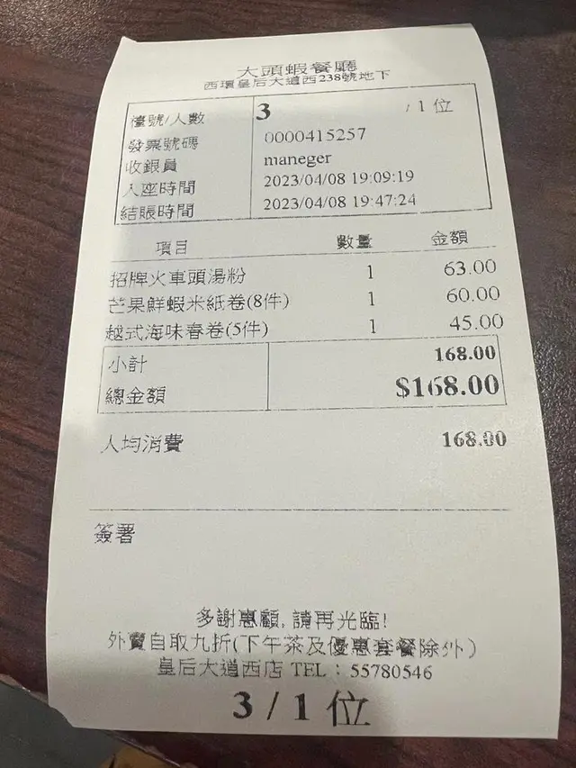 早排喺西環附近有啲野做,整完嘢就睇吓附近有咩食,都係想以下桃姐,見到呢間大頭蝦餐廳食越南嘢,都幾吸引,就入咗去啦。哦,原來仲有下午茶,價錢好吸引,我地三個人嗌咗勁多嘢食😆呢度係雞扒喇沙湯米粉,個喇沙湯超好味,雞扒份量都好多,呢個下午茶真係性價比勁高!呢個朋友食嘅熟牛肉湯河,個樣唔係幾吸引,但係識落就真係驚為天人, 30幾蚊,但牛肉有牛肉味,係軟熟嘅,真心好食,仲有個河粉,滑到不得之了,個湯底都好正,雖然我揀嘅喇沙都好好食,不過要揀多次,我會揀呢個牛肉湯河😆😆跟住到呢個豬扒撈檬,豬扒勁大份,好食嘅!天氣太熱,每人都揀咗嗰啲好肥嘅嘢飲😆鹹檸七,紅豆冰,凍檸茶坐喺度傾偈忍唔住再嗌其他小食,豬頸肉勁Juice !另外串燒豬同雞,質素一般,再加多個香茅牛肉法包,呢個就真係多咗啦,試過一次就算喇😂查看更多