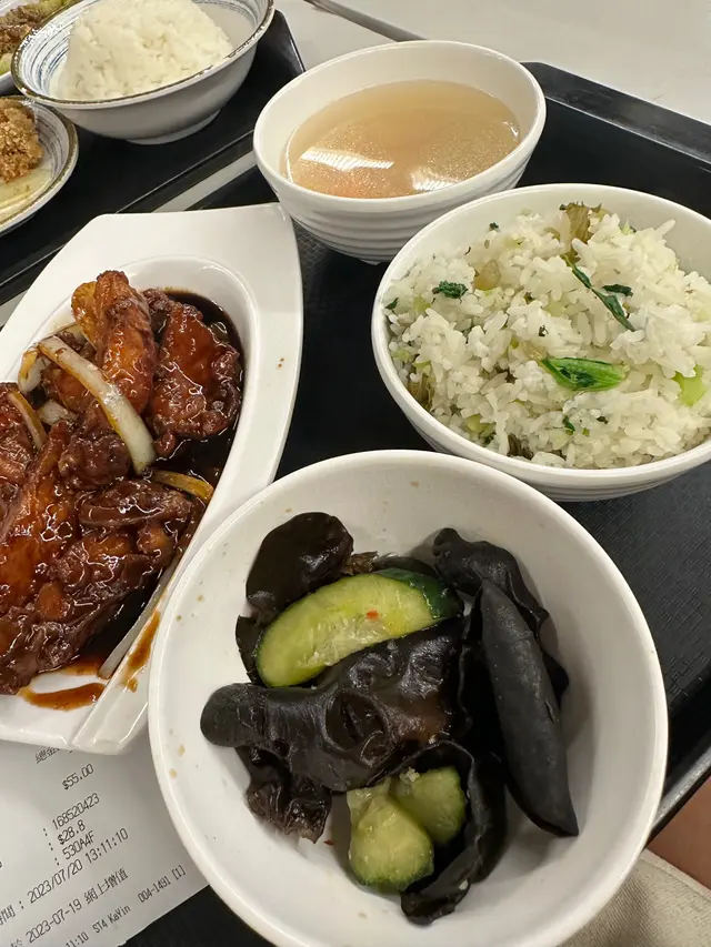 今日lunch time 去左food court 食…因為尖沙咀搵野食..全部都好多人!大食代-上海小炒叫左黑醋排骨菜飯套餐 $55有餐湯+飯+主菜+配菜青瓜雲耳性價比高~而且好夠飽😋😋😋黑醋排骨菜是一道美味又營養豐富的中式菜餚。首先讓人注意到的是排骨,肉質鮮嫩,帶有濃郁的黑醋味,讓人食慾大開。菜飯裡面的蔬菜類別豐富,菜飯有口感,同時也為整道菜增添了豐富的營養成分。👍🏻飯量適中,吃起來不會太膩,但又能夠讓人飽足。整體來說,這款菜‘黑醋排骨菜飯套餐’值得推薦的美食,不論是平時的午餐還是晚餐都是不錯的選擇。 可以試試~查看更多