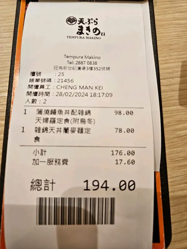 天ぷらまきの (旺角) 網址: https://s.openrice.com/QrbS0vf0C00 地址: 香港旺角旺角太子道西193號MOKO新世紀廣場3樓352號舖 電話: +852 28870838