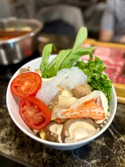 提供多種特色火鍋湯底,包括潮汕牛骨湯、重慶紅麻辣等,亦設有鴛鴦鍋。另有拼盤套餐,如牛肉拼盤、豚肉拼盤、海鮮拼盤等。