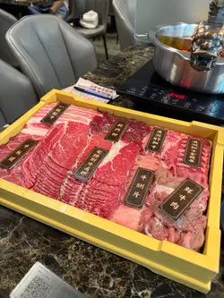 我和朋友都很喜歡吃火鍋放題,這店最吸引我們的是有多款高質牛肉,而湯底和各類火鍋配料也合我們心意。價錢也非常實惠,只需$268(醬芥$13),任食兩小時。一開始先來牛肉拼盤:澳洲和牛金錢錢、澳洲M7和牛、封門柳、一級肥牛、安格斯牛肩胛、牛板腱、牛脷片、鮮牛肉,十分豐富。鴛鴦鍋湯底(+$16),我們選了喇沙湯(+$28)及潮汕牛骨湯。喇沙湯底香濃而不太辣,牛骨湯十分清香,更有大蔥香味,淥牛肉味道很夾。除了豐富的牛肉,還有其他火鍋配料、飲品、雪糕,還有龜苓膏可自取,真是大滿足!查看更多