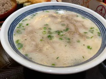 每天經過天丼都見到勁多人排隊,難得見到排隊嘅人唔算好多就去排下試下新嘢。排咗大約十分鐘左右就有位,唔算話等得太耐,可以接受嘅程度。我地點咗《豚骨白湯蕎麥麵》同《天婦羅蕎麥麵》兩個set,佢個set嘅天婦羅有兩隻虎蝦,仲有蟹柳、茄子、蓮藕同四季豆。佢個天婦羅嘅粉漿唔算好厚,亦炸得好鬆脆,唔會好油淋淋,呢方面佢處理得好好。我點個餐係《豚骨白湯蕎麥麵》,佢個湯底嘅味道同出前一丁個豬骨濃湯味幾乎一樣,係一種熟悉嘅味道。豚骨白湯同蕎麥麵加埋一齊亦冇違和感,雖然習慣咗食蕎麥麵係凍食,原來熱食都一樣咁好食。而《天婦羅蕎麥麵》則係正常水平,蕎麥麵正常都唔會有太大嘅反差。我哋另外點咗個茶碗蒸,個蛋蒸得好滑,材料亦算豐富,但比較另一間知名壽司店嘅茶碗蒸,都有一段距離差距。今次蠢咗嘅係我哋點嘅嘢係幾乎一樣,應該要點一個飯就理想啲,下試要試下佢其地嘅丼飯,始終我覺得佢嘅飯出名過麵。…查看更多