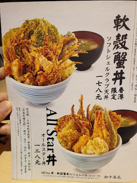今次黎到旺角,揀左依間位於朗豪坊,十分出名既天婦羅飯,依間雖然天丼選擇唔多,但食物質素十分高,我叫左天吉丼同All star,首先會有個椰菜沙律絲作為前菜,配上柚子沙律醋,食起上黎十分清新,另外依度係有牛蒡茶代替綠茶,不同於一般日本餐廳,牛蒡茶有好重既牛蒡味,與天丼十分配搭。天吉丼同All star既天婦羅份量十分多,有蝦天婦羅、墨魚天婦羅天婦羅魚、流心蛋天婦羅,不同在於天吉丼有茄子天婦羅,all star就有洋蔥絲天婦羅,每樣既天婦羅都新鮮炸,外皮十分香脆,海鮮亦有本身鮮味,配上特製既天婦羅汁,十分好食。推介大家一試…查看更多