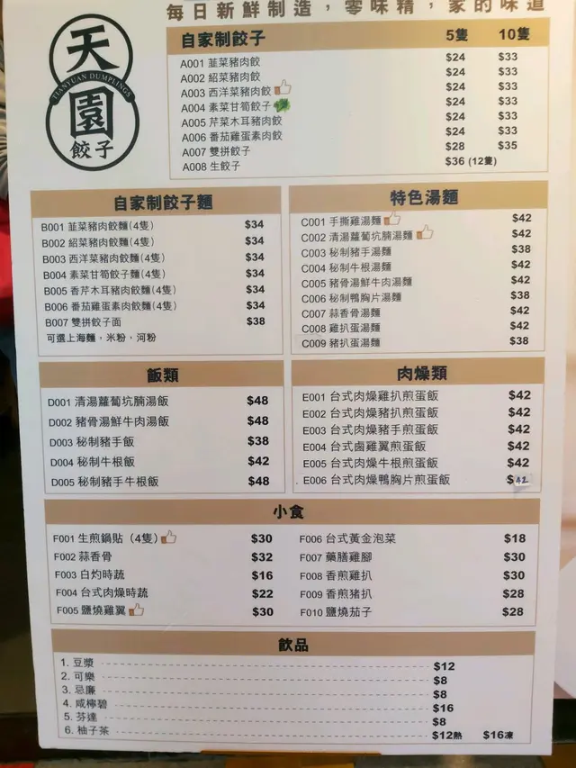 餃子皮真係好薄餡份量適中第一次食蕃茄蛋/西洋菜餃子少許甜味加上清湯剛剛好牛坑腩雖然件數唔多但係靚腩,有少少咬口又唔太騷(一般餐廳好易太"淋" /太"鞋" ) 上海幼麵(?) 少少彈牙,係我鍾意嘅口感下次會試下佢個手撕雞湯麵隔左少少時間食都仲維持到好脆味道就係醃過的炸雞翼,唔會太淡雖然肉燥味道比較淡,需要改進但欣賞佢有台式肉燥配蔬菜菜心都算ok店員好有禮貌見我地企門口等耐左特登打開門講聲已經pack緊d食物有機會一定再幫襯