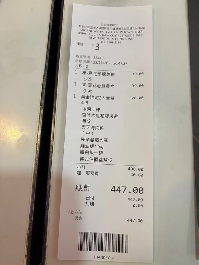 天天海南雞飯 (新城市廣場三期) (沙田) 網上訂座即賺Rice Dollars 網址: https://s.openrice.com/QrbS0an4A00 地址: 香港沙田沙田正街2-8號新城市廣場三期3樓A363號舖 電話: +852 31082186