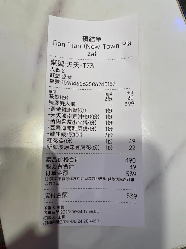 Tian Tian Hainanese chicken rice (New Town Plaza Phase III)
