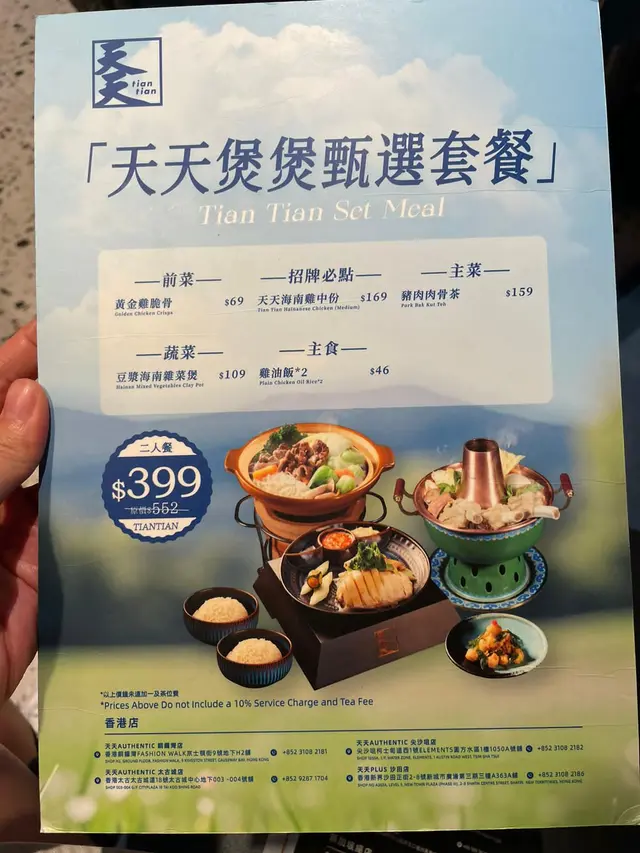 天天海南雞飯 (新城市廣場三期) (沙田) 網上訂座即賺Rice Dollars 網址: https://s.openrice.com/QrbS0an4A00 地址: 香港沙田沙田正街2-8號新城市廣場三期3樓A363號舖 電話: +852 31082186
