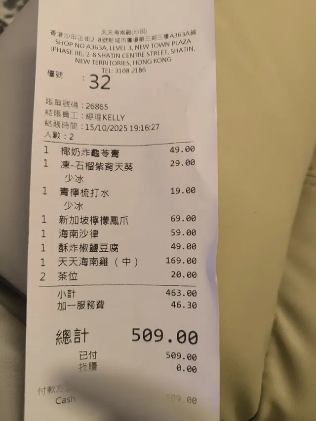 天天海南雞飯 (新城市廣場三期) (沙田) 網上訂座即賺Rice Dollars 網址: https://s.openrice.com/QrbS0an4A00 地址: 香港沙田沙田正街2-8號新城市廣場三期3樓A363號舖 電話: +852 31082186